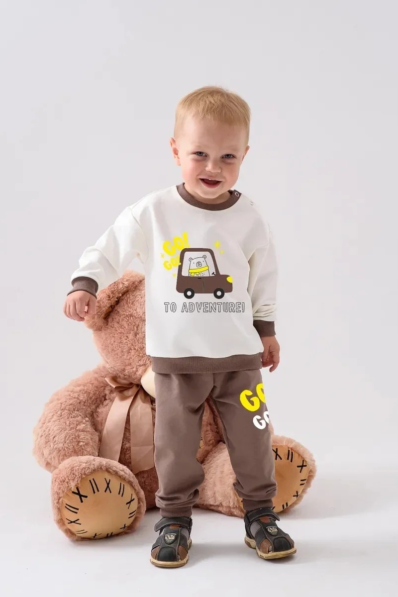 Костюм двойка детский 2376-Фут "Футер" футер 2-х нитка (р-ры: 80-110) медведь коричневый
