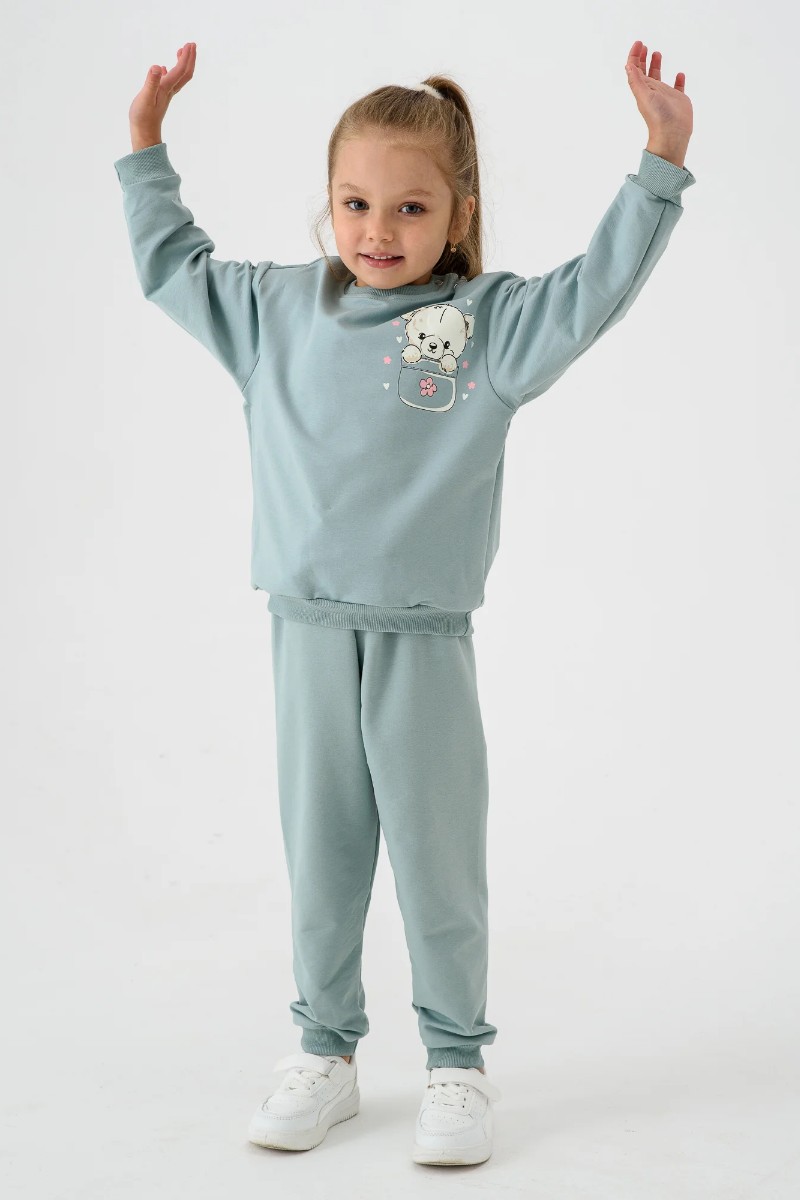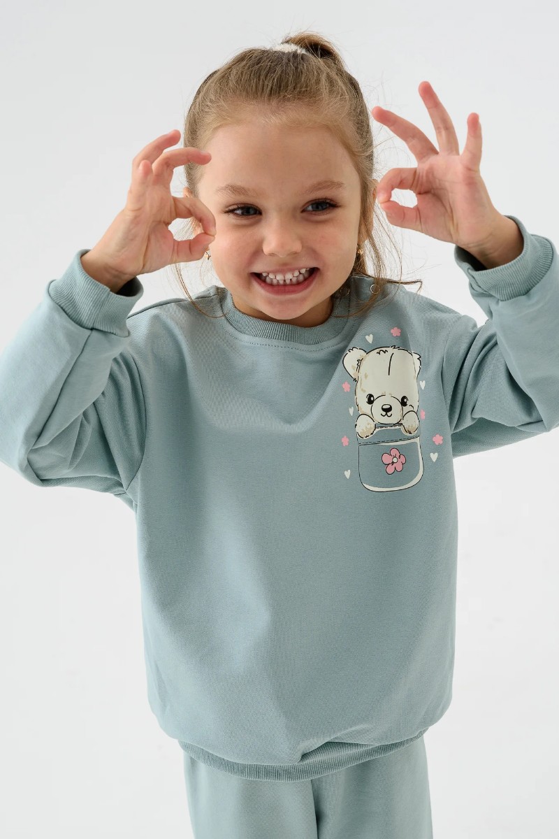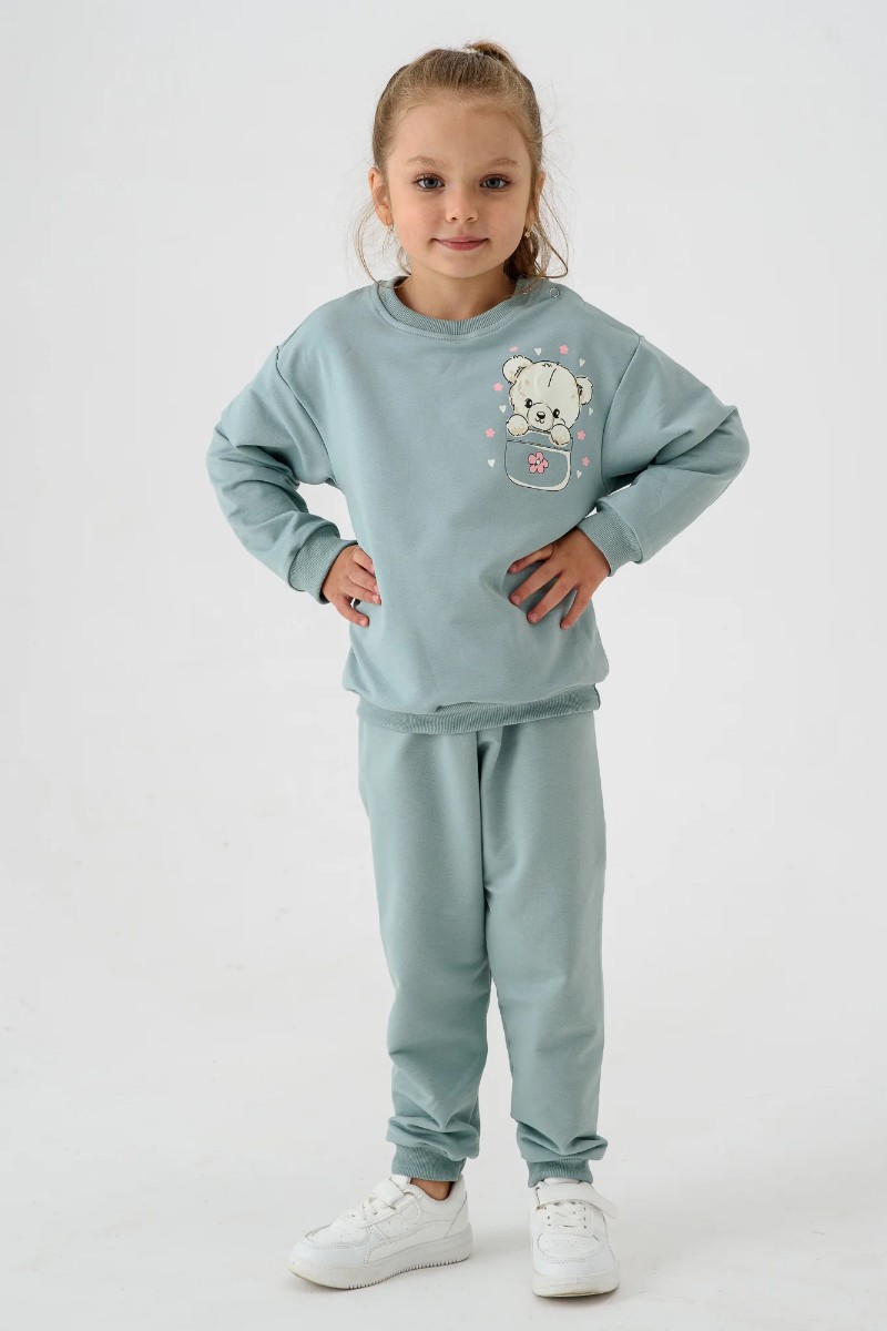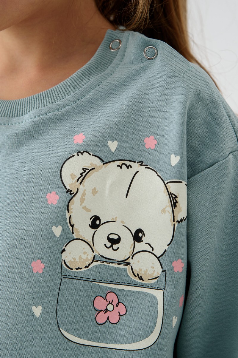 Костюм двойка детский 2377-Фут "Футер" футер 2-х нитка (р-ры: 80-110) мишка ментол