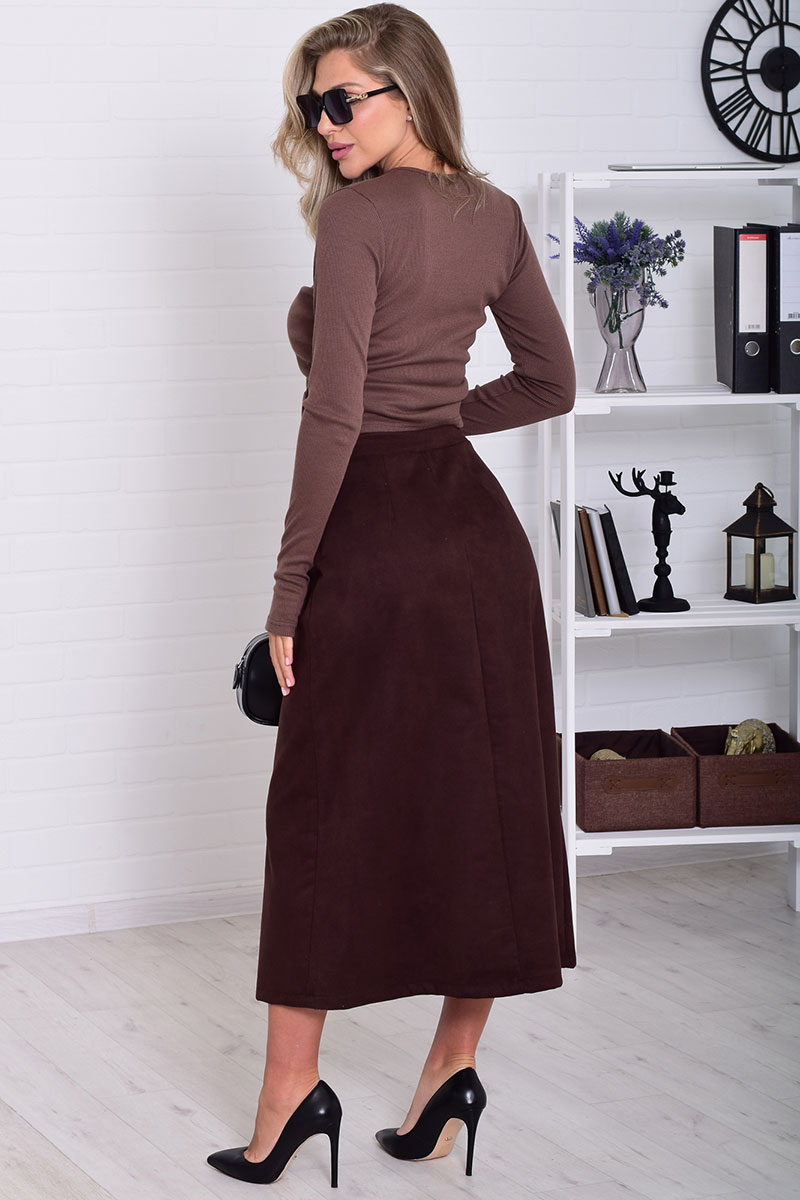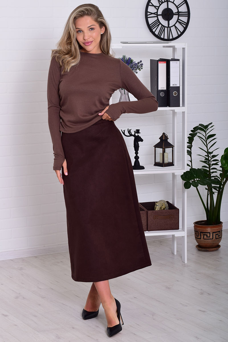 Юбка женская Ф9010б замша (р-ры: 44-54) темный шоколад