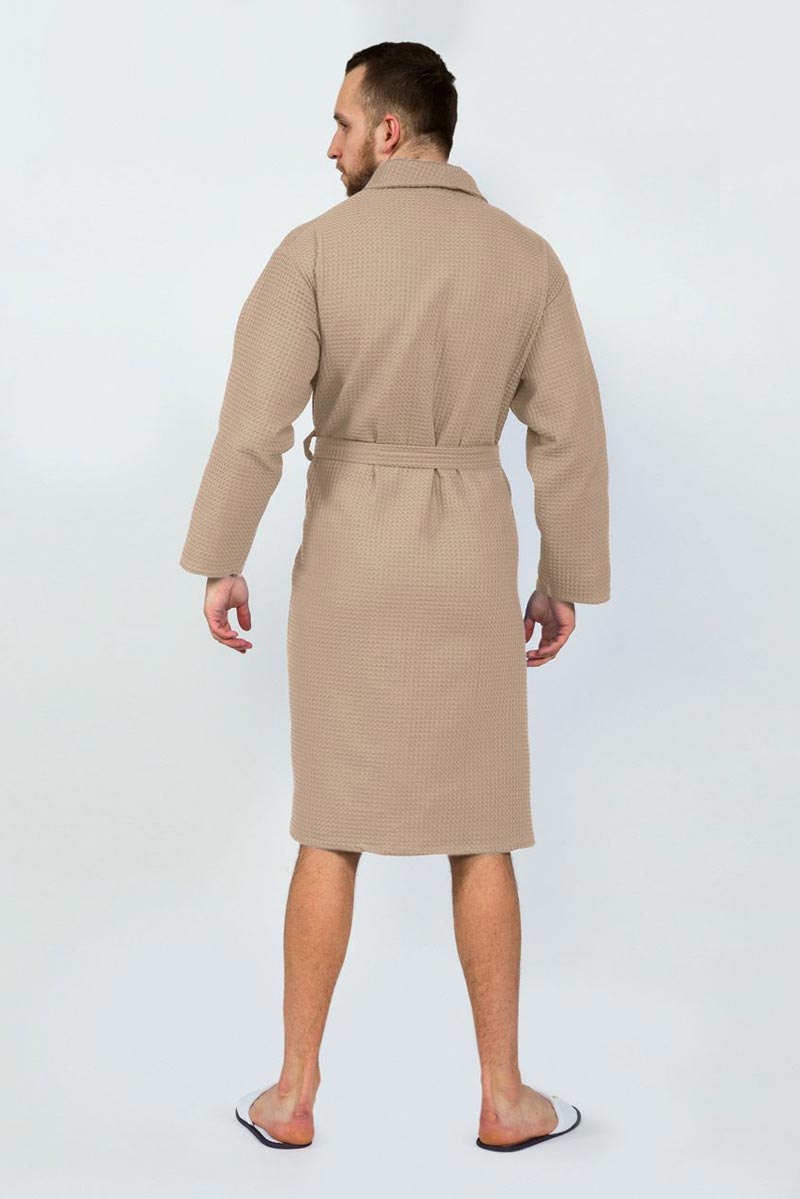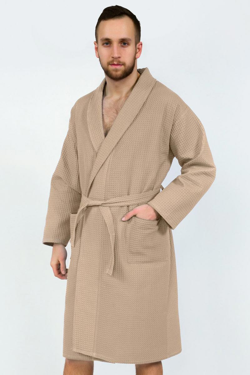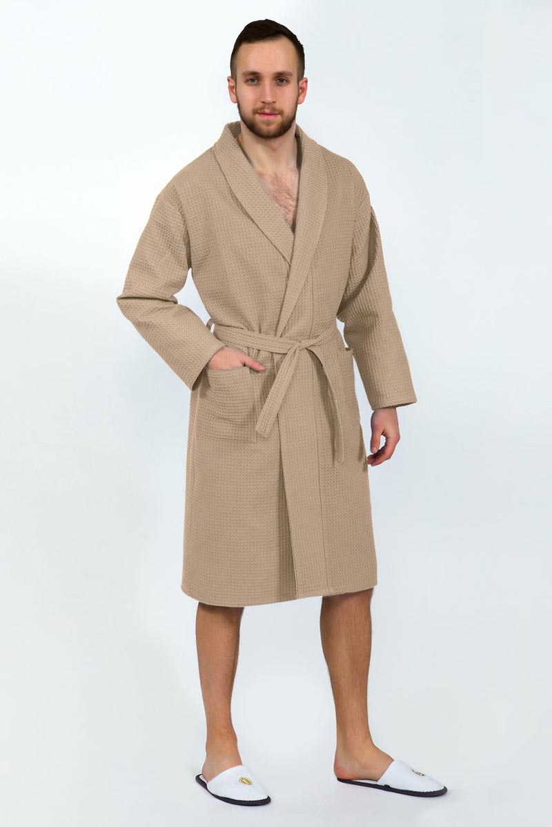 Халат унисекс запашной с воротником вафельное полотно (последний размер) бежевый 48-50, 56-60