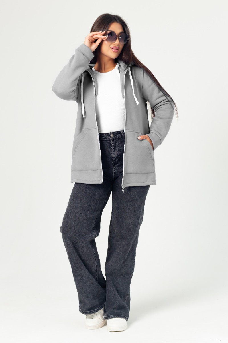 Толстовка женская ФТ-16 "Роксана" футер 3-х нитка с начёсом (последний размер) серый 48