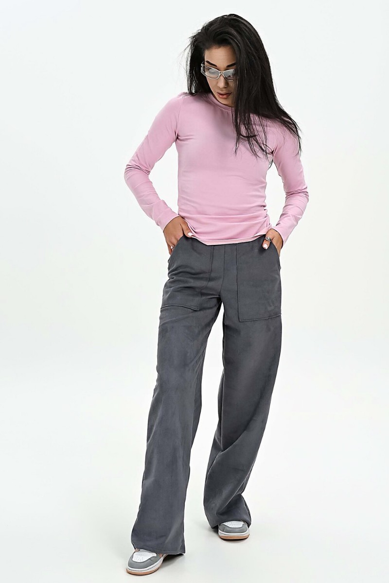 Брюки женские №058621 эко-замша (р-ры: 42-52) серый