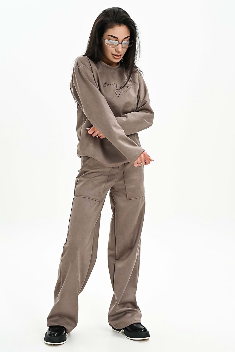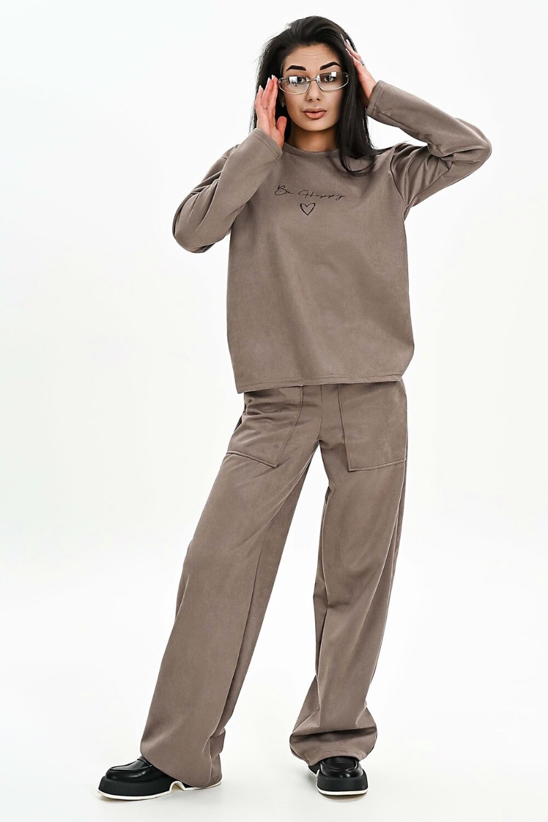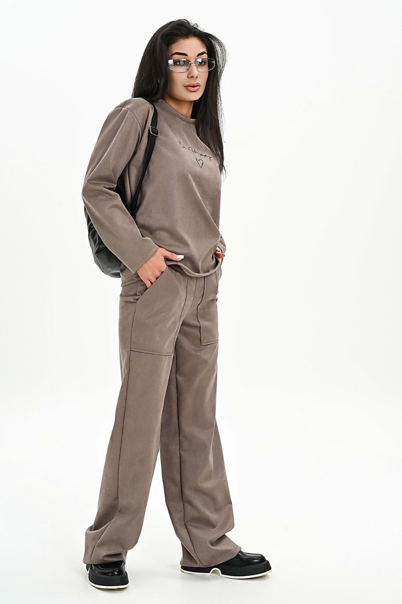 Свитшот женский №058620 эко-замша (р-ры: 42-52) бежевый