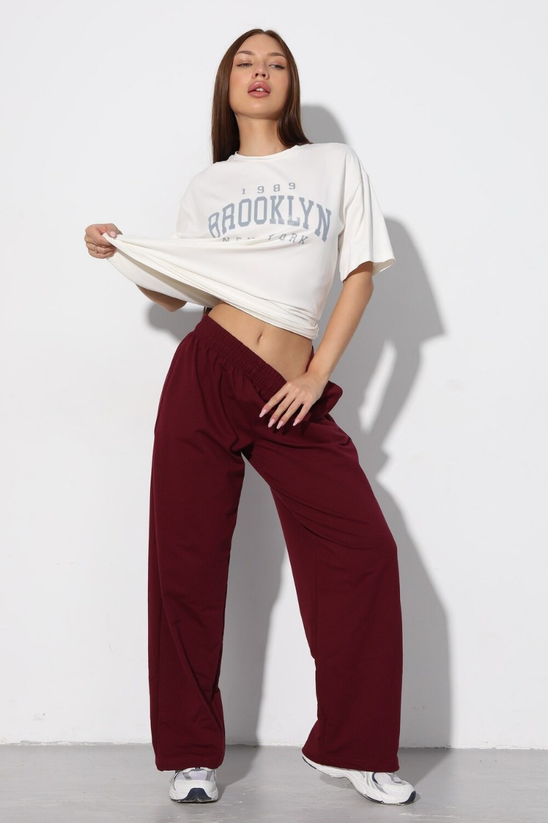 Брюки женские Б-02 футер 2-х нитка (р-ры: XS-L) бордовый