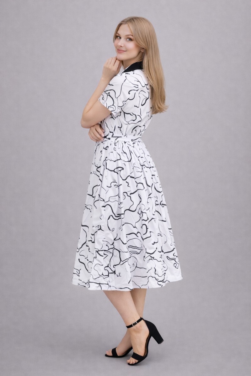 Это платье идеально подходит для офиса, прогулок, деловых встреч или особых случаев. Сочетается с каблуками, балетками или стильными кроссовками для более повседневного образа.