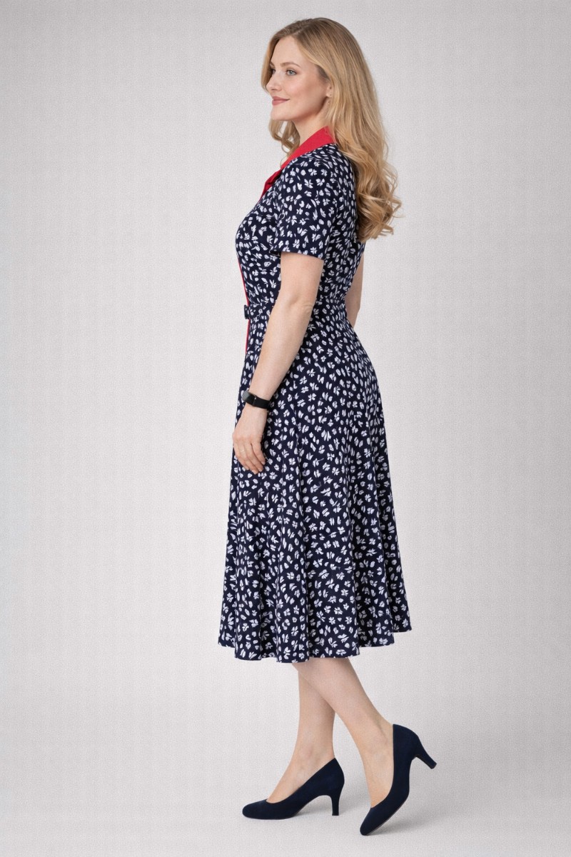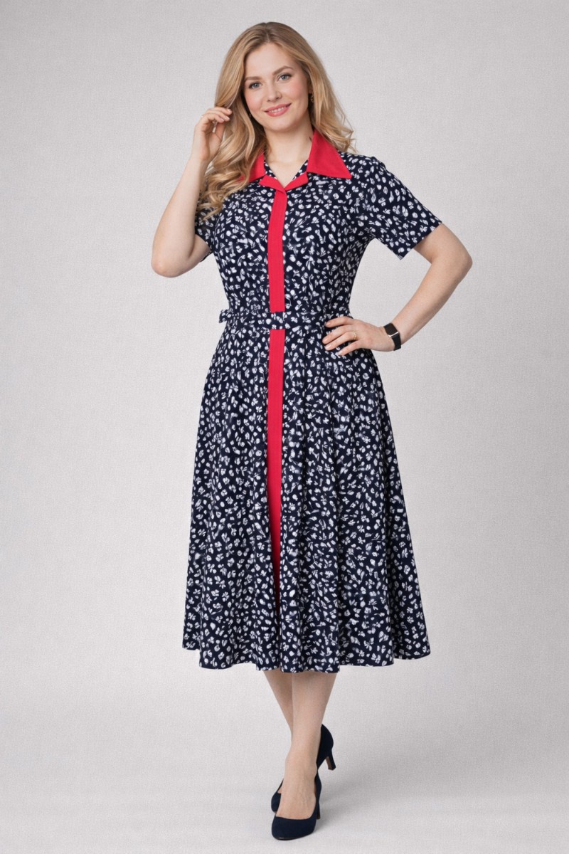 Свободная юбка-миди обеспечивает свободу движения и элегантную посадку.