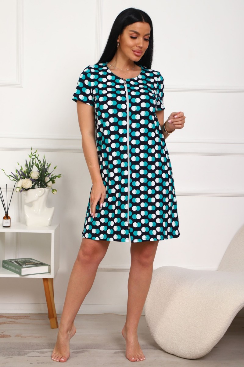 Халат женский №130т/1 кулирка (р-ры: 42-50) т.синий-т.бирюзовый