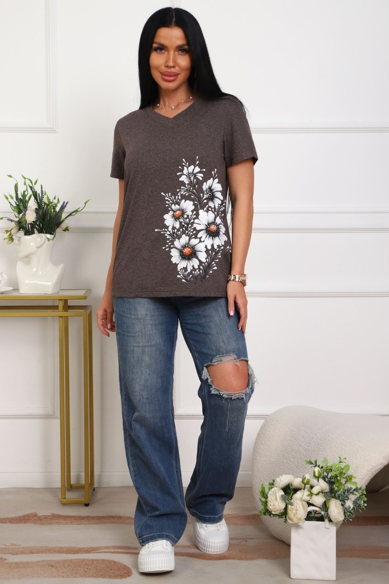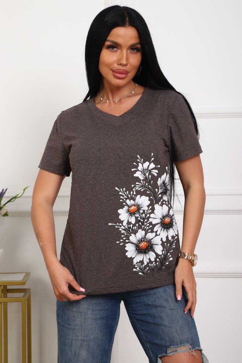 Футболка женская №29540 кулирка (р-ры: 50-60) коричневый