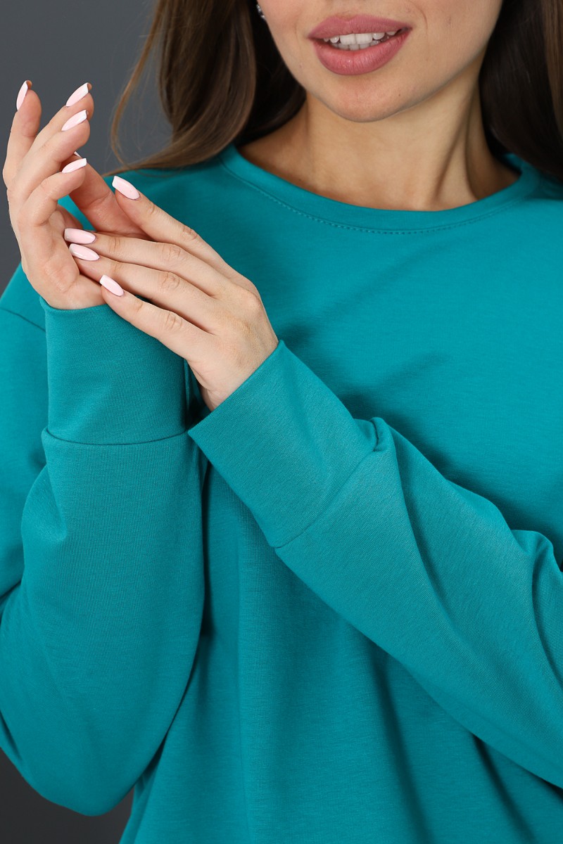 Свитшот женский С-01 футер с лайкрой 2-х нитка (р-ры: 42-62) изумрудный