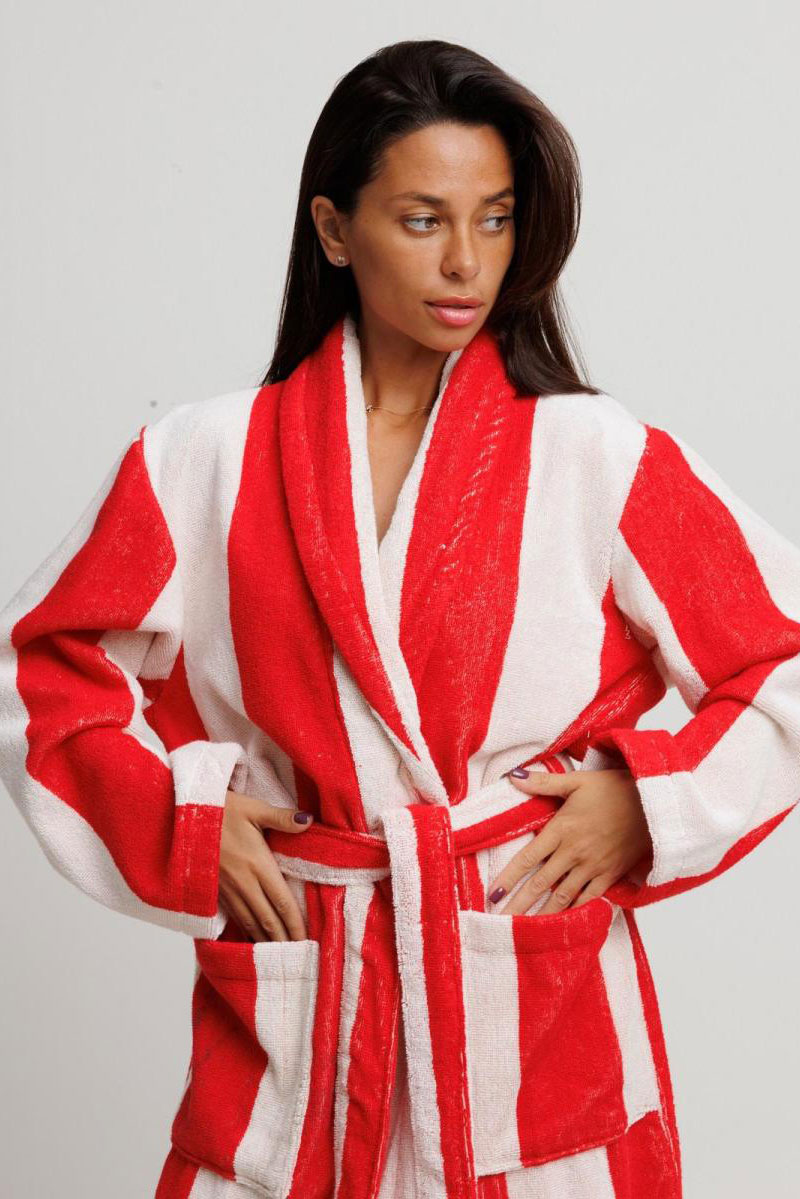 Халат женский махровый Urban Family (р-ры: 42-60) "Полоски красные"