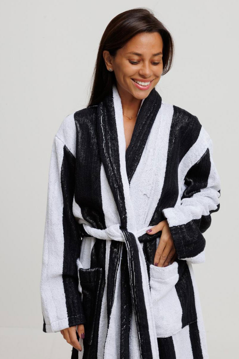 Халат женский махровый Urban Family (р-ры: 42-60) "Полоски черные"