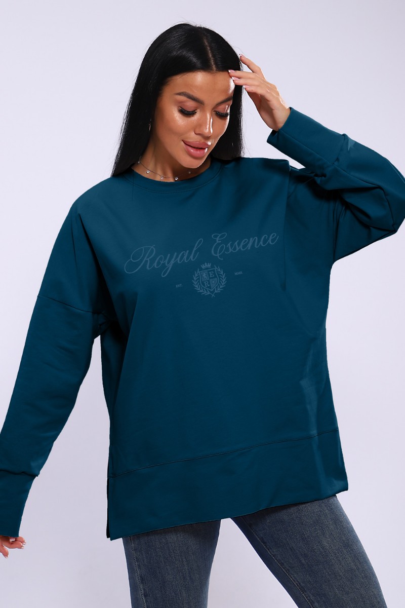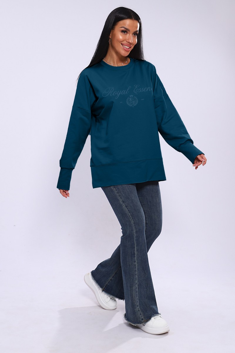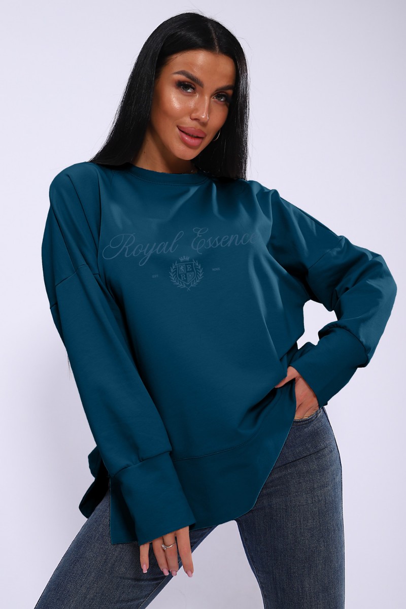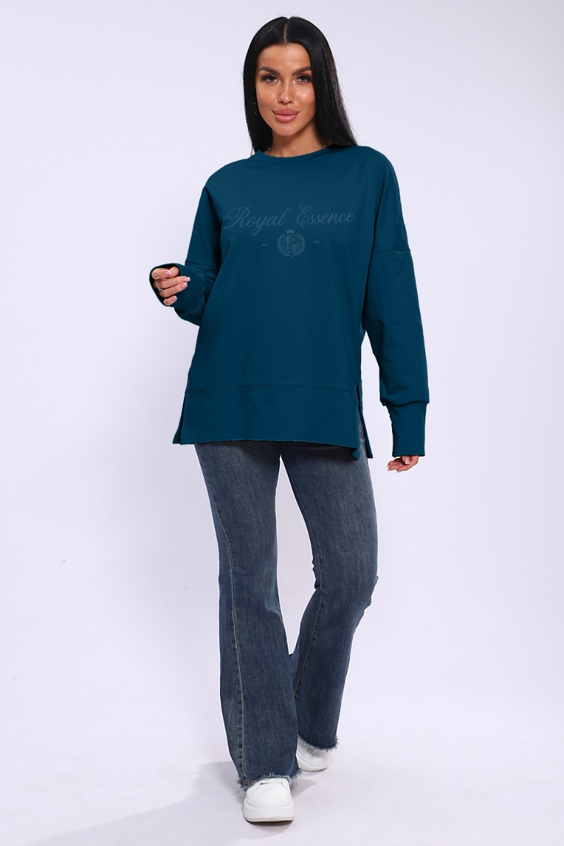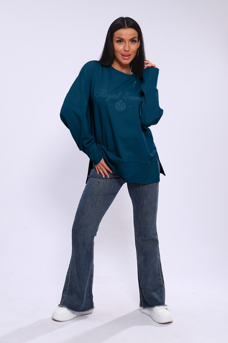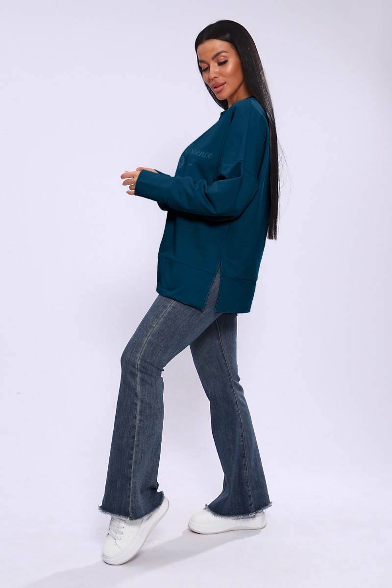 Лонгслив женский ЛЖ-013 кулирка (р-ры: 46-56) сине-бирюзовый
