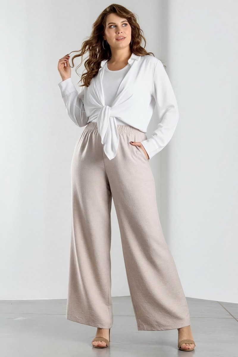 Представляем Вашему вниманию брюки женские из гладкокрашеного тканого полотна, свободного покроя, с карманами в боковых швах, на притачном поясе с эластичной тесьмой внутри.