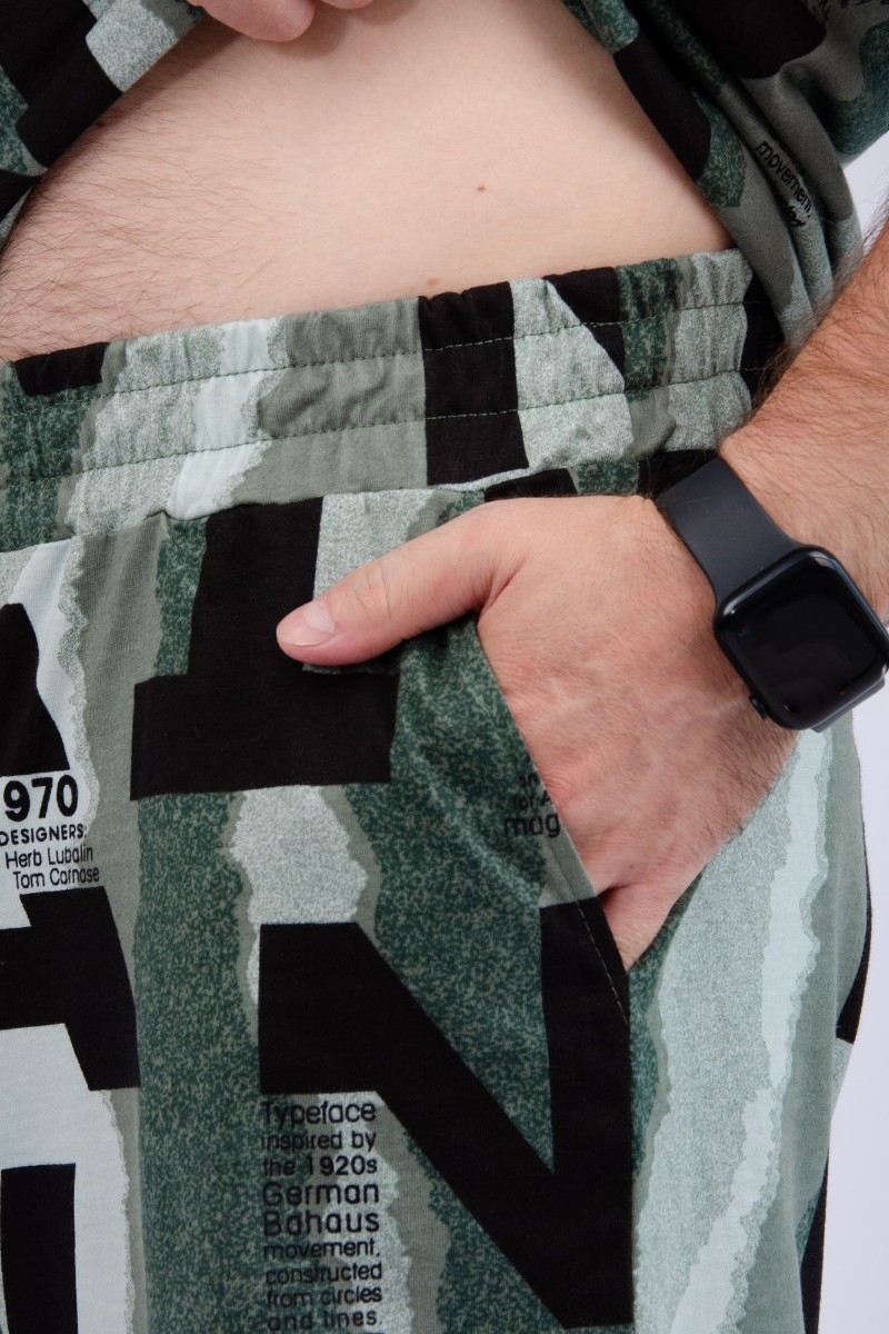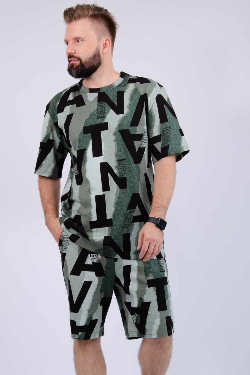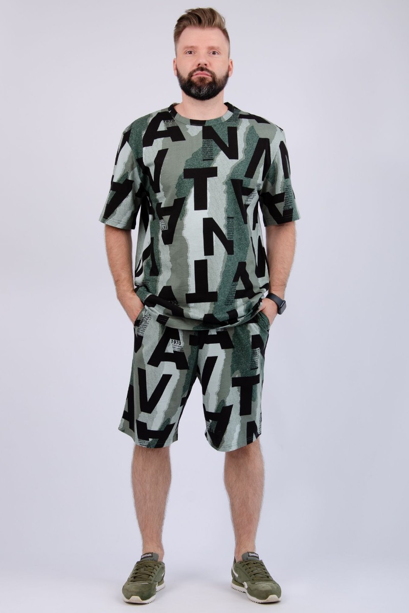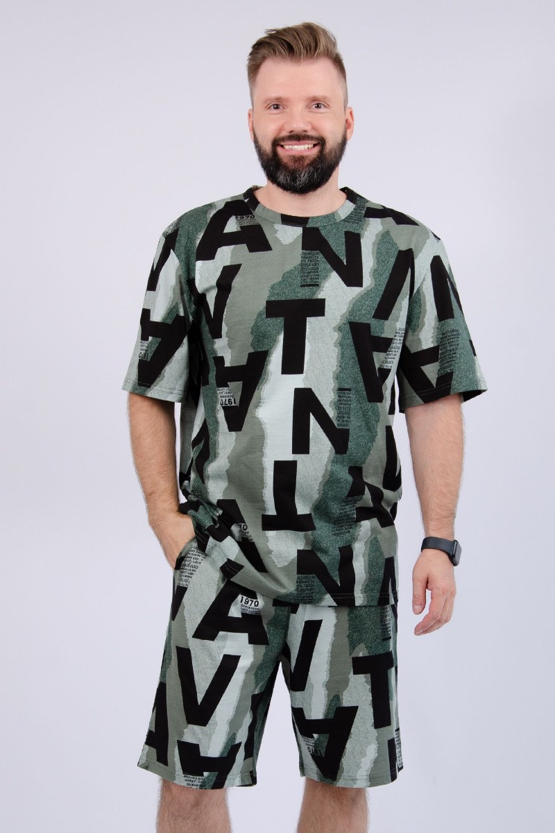 Представляем Вашему вниманию мужской костюм двойку, состоящий из футболки и шорт. Комплект имеет интересную расцветку, которая красиво смотрится и поднимает настроение. Костюм хорошо сидит на фигуре и подчеркивает её достоинства. Отдых в нём будет максимально комфортным и расслабляющим.