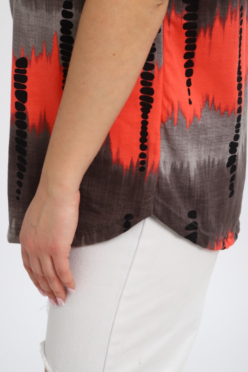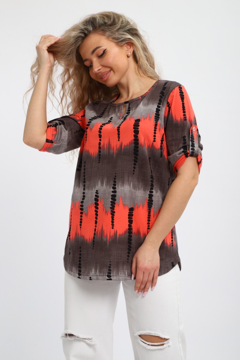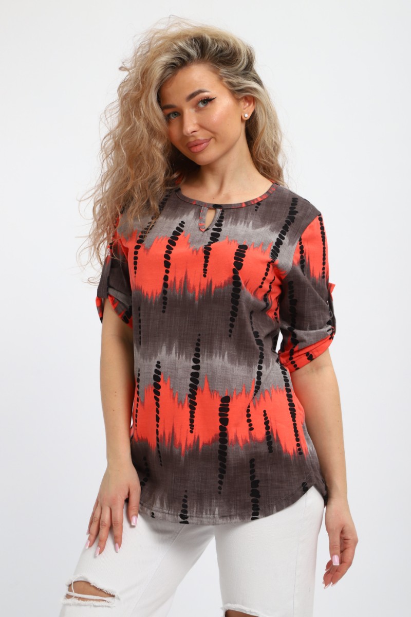 Представляем Вашему вниманию легкую женскую тунику из кулирки - 100% натурального, дышащего хлопка. Модель имеет интересную расцветку, которая красиво смотрится и поднимает настроение. Изделие хорошо сидит на фигуре и подчеркивает её достоинства. В ней Вы будете чувствовать себя комфортно и уверенно.