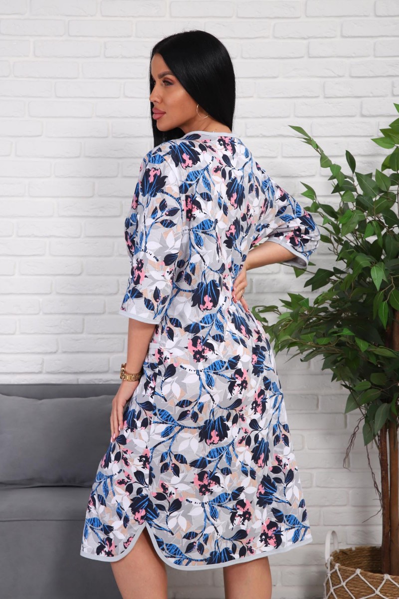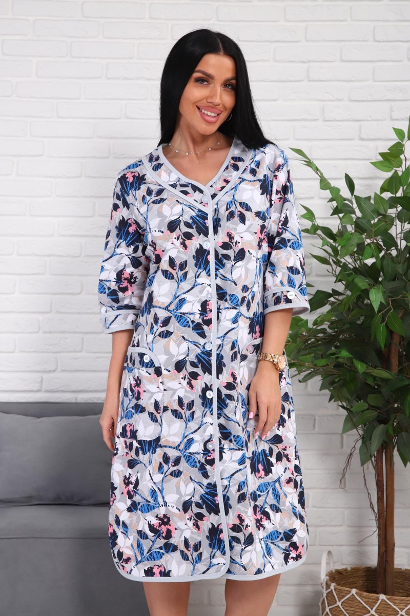 Халат женский 01076 кулирка (р-ры: 50-60) синий