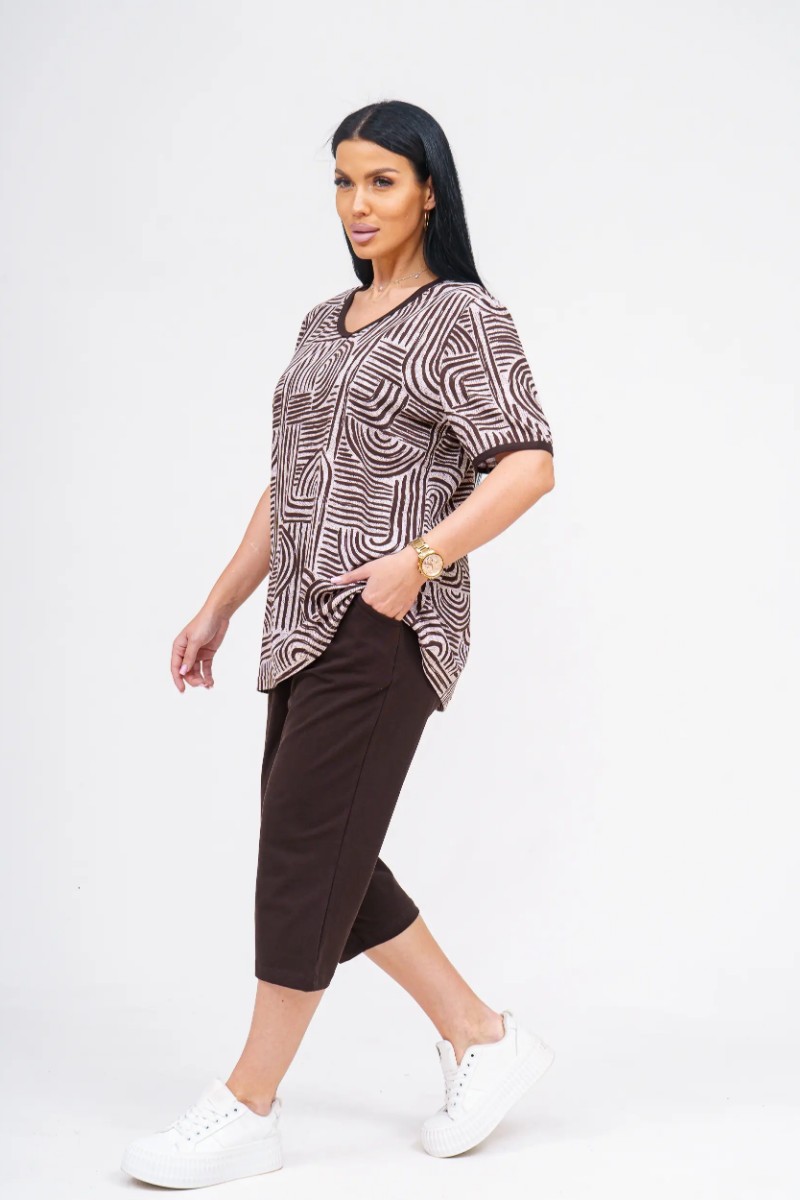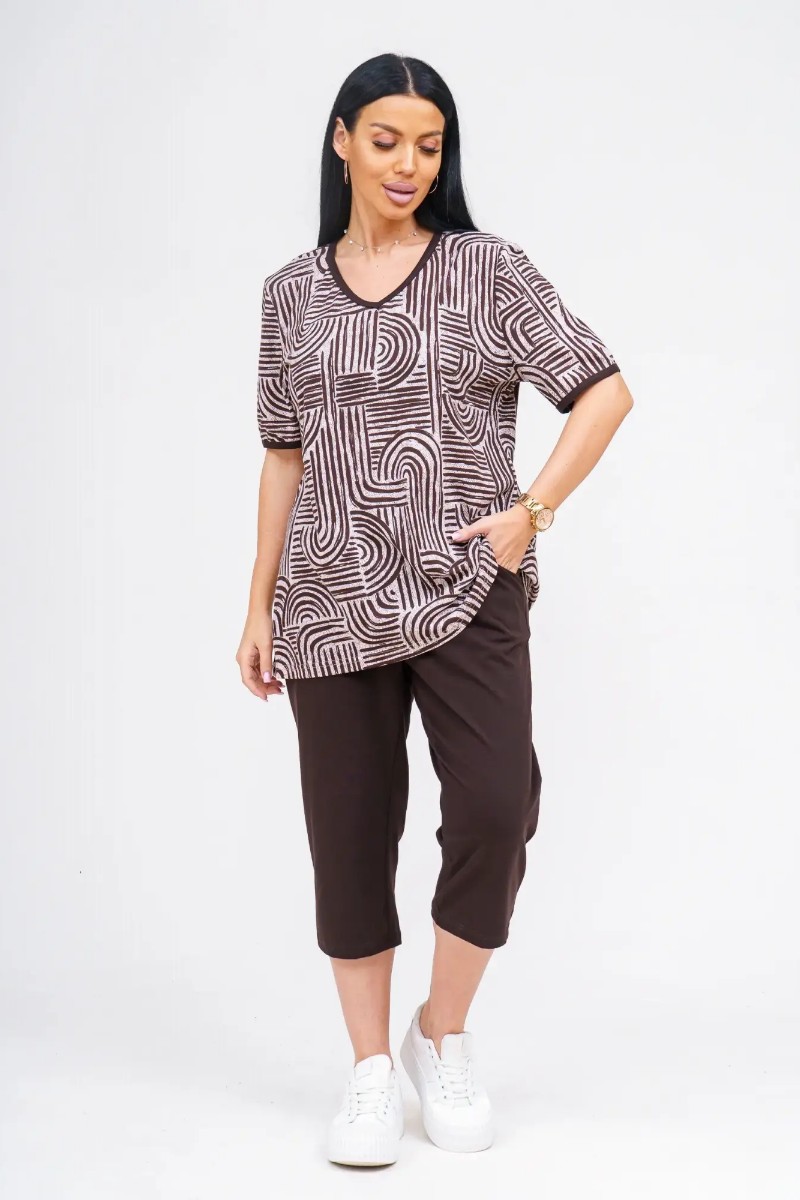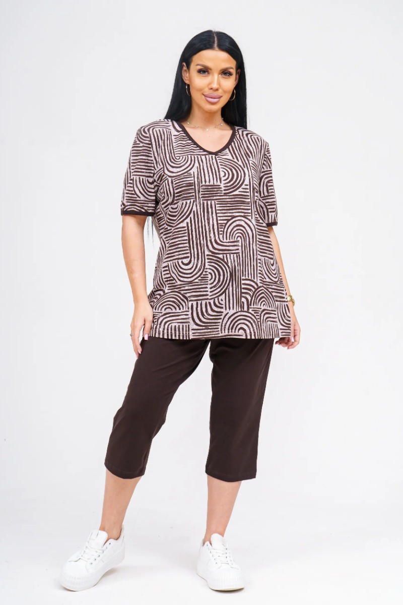 Костюм двойка женский "Арина" хлопок (р-ры: 50-60) шоколад