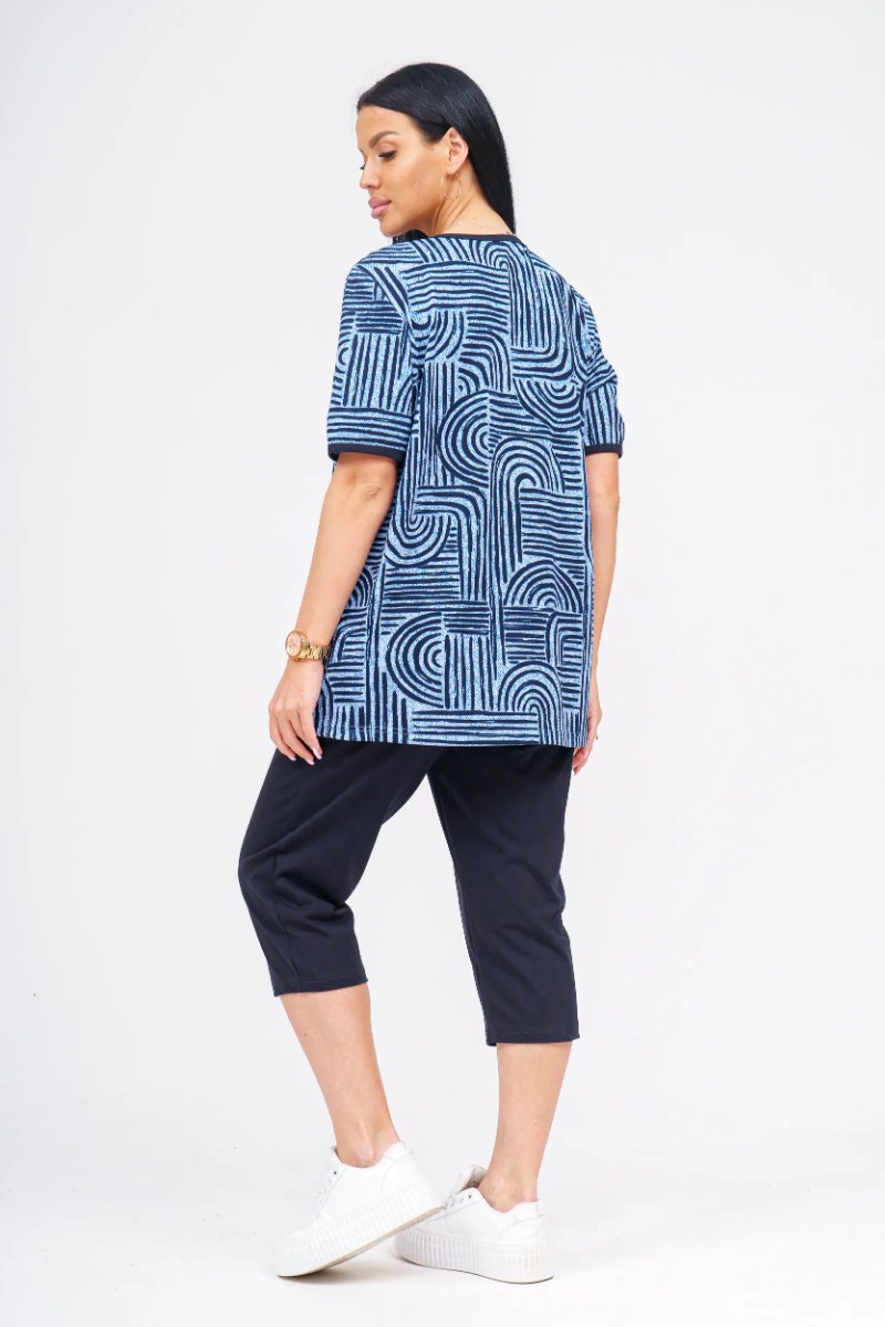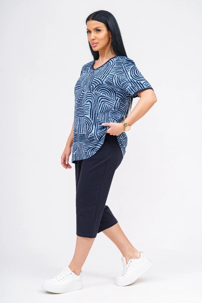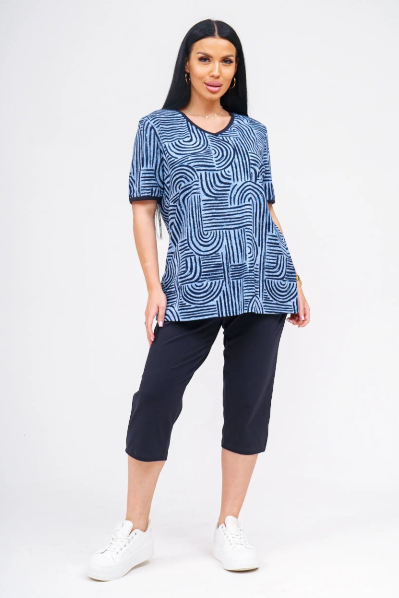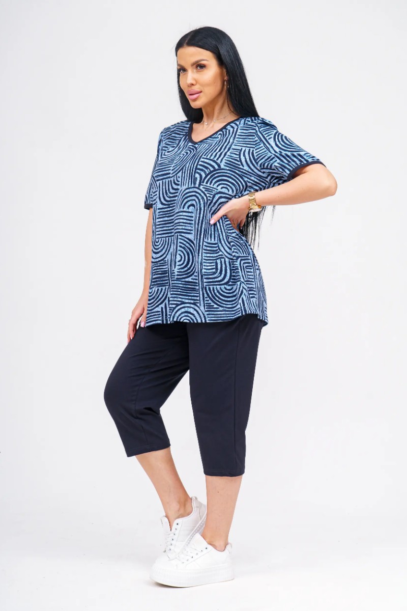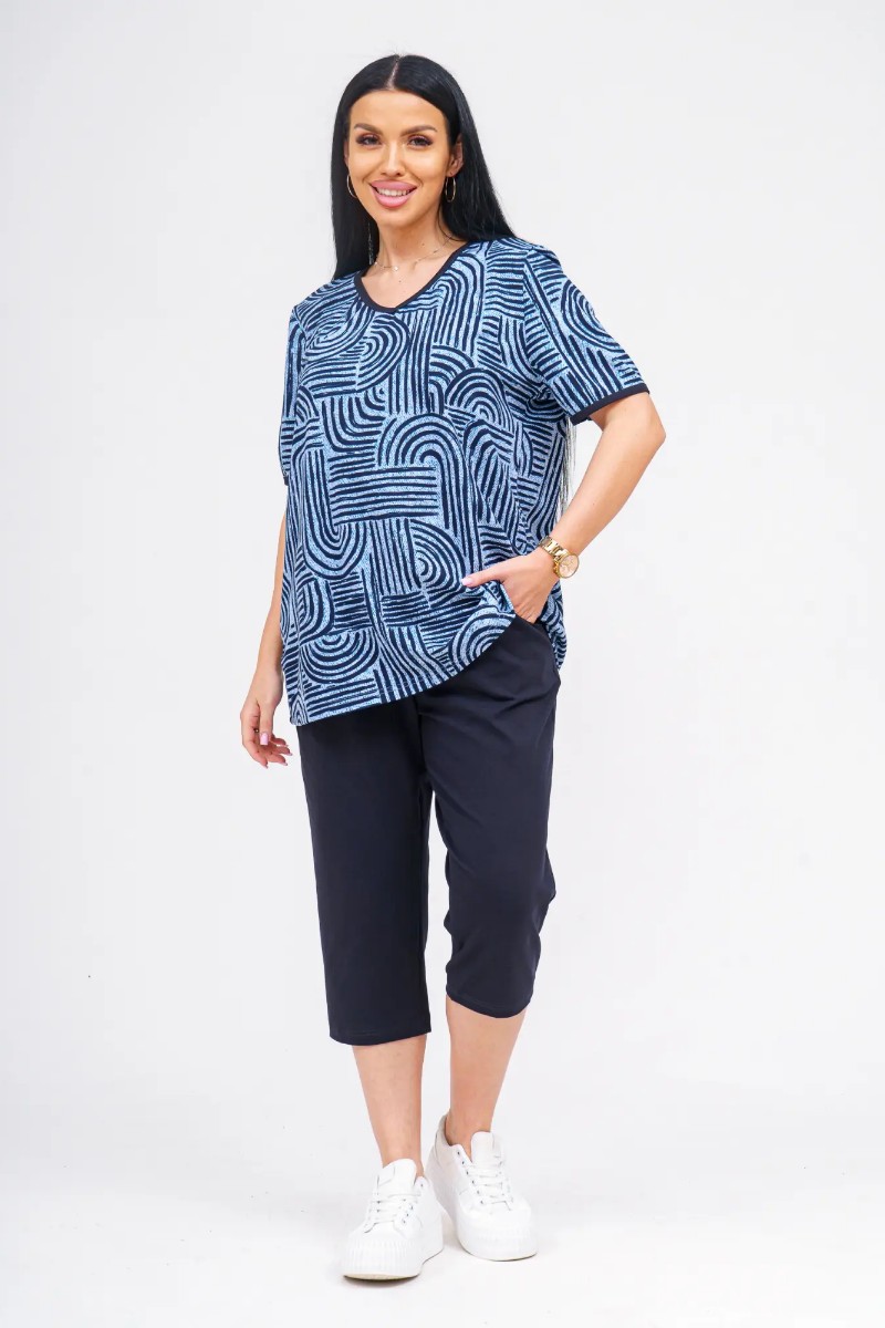Представляем Вашему вниманию удобный и стильный женский костюм, который станет отличным выбором для дома, прогулок или активного отдыха. Верх комплекта — легкая футболка свободного кроя, выполненная из 100% хлопка, что обеспечивает отличную воздухопроницаемость и комфорт даже в жаркую погоду. Низ — бриджи длиной до колена с удобными карманами, изготовленные из мягкой и эластичной ткани (92% хлопок, 8% эластан), которая не сковывает движений и отлично держит форму. Костюм представлен в широком размерном ряде 50–60, что позволяет подобрать подходящий вариант для каждого типа фигуры.