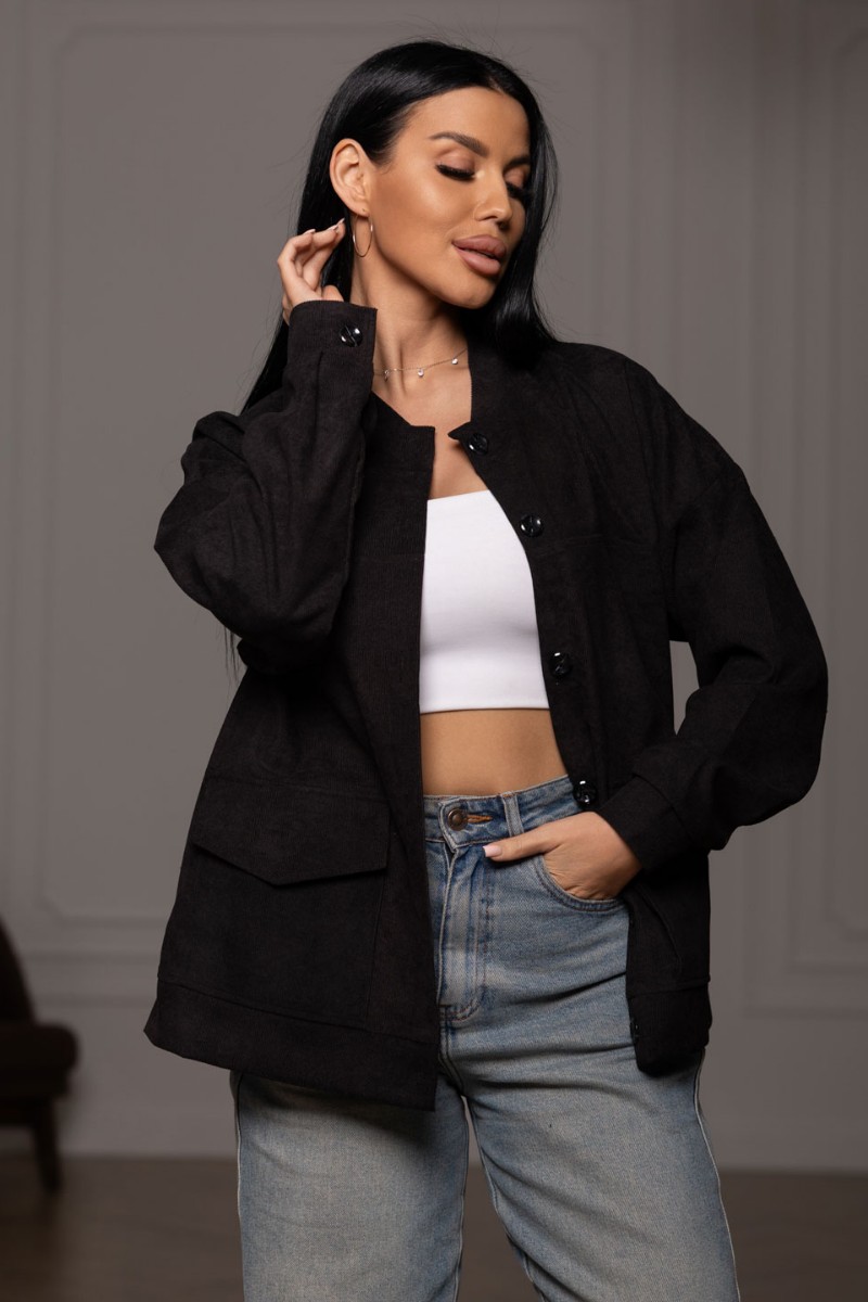 Представляем Вашему вниманию женский бомбер из микровельвета, на пуговицах с большими накладными карманами, длинным рукавом и манжетой. Модель идеально подходит на весенне-осенний период.