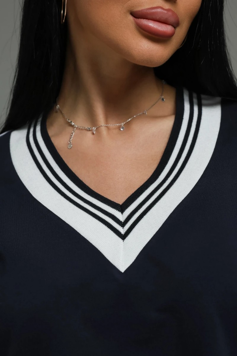 Горловина: Глубокий V-образный вырез, визуально вытягивающий шею и добавляющий образу женственности.