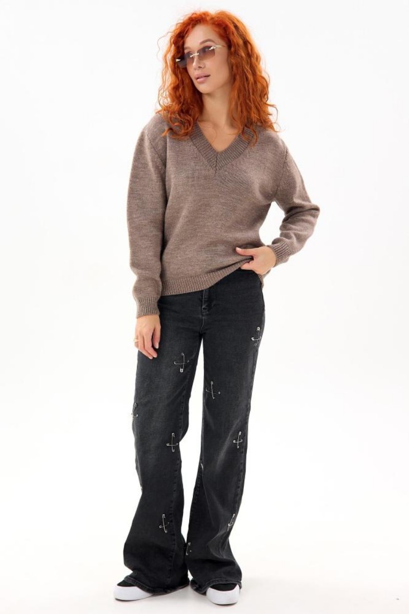 Джемпер женский "Моника К" вязаное полотно (р-ры: 44-62) темно-коричневый