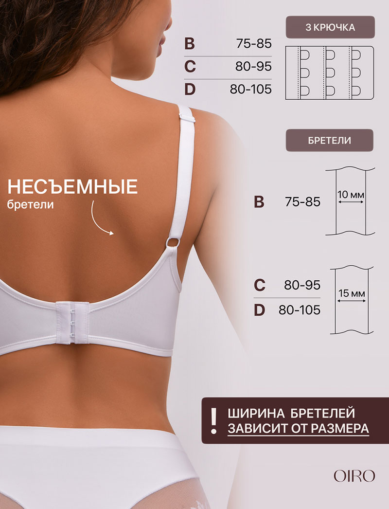 Представляем Вашему вниманию бюстгальтер. Формованные чашки без косточек обеспечивают мягкую и естественную поддержку, не сковывая движения. Дышащая микрофибра подарит ощущение комфорта в течение всего дня, а нежное кружево добавит вашему образу изысканности. Регулируемые бретели позволят идеально подогнать бюстгальтер по фигуре. OIRO Snowdrop – это прекрасный выбор для тех, кто ищет идеальный баланс между комфортом, поддержкой и элегантным дизайном.