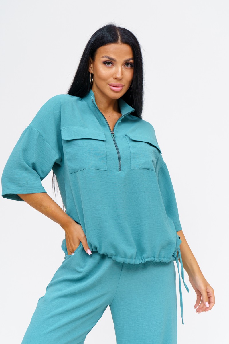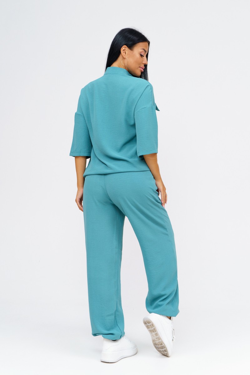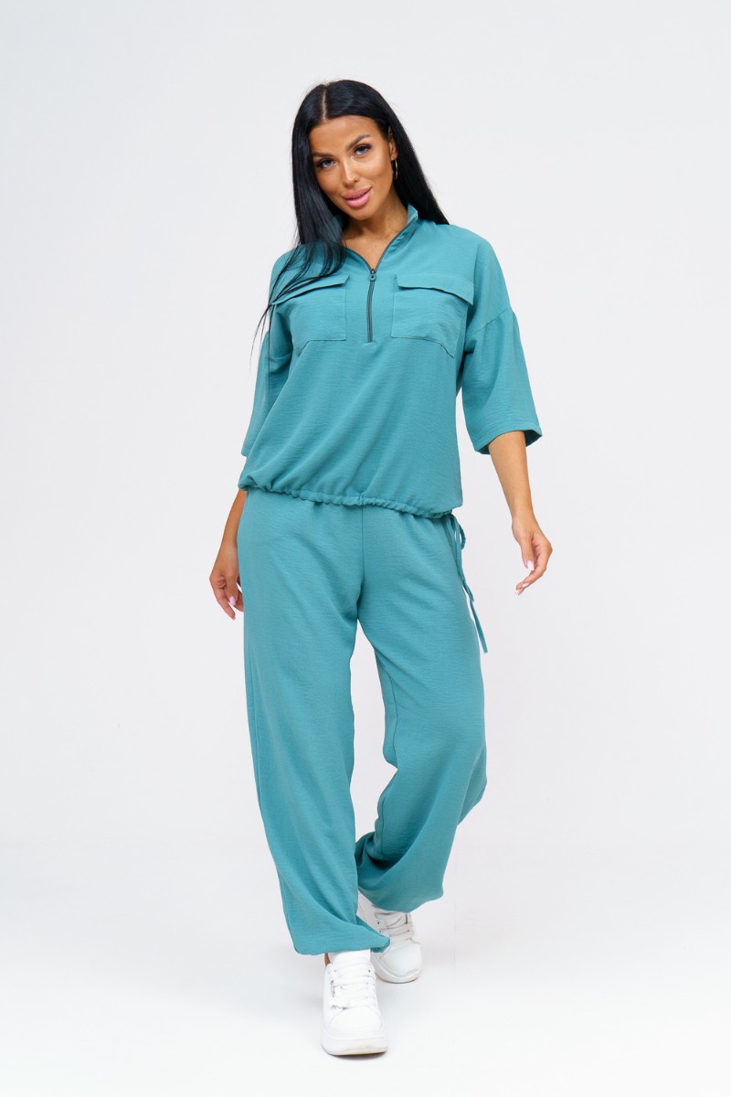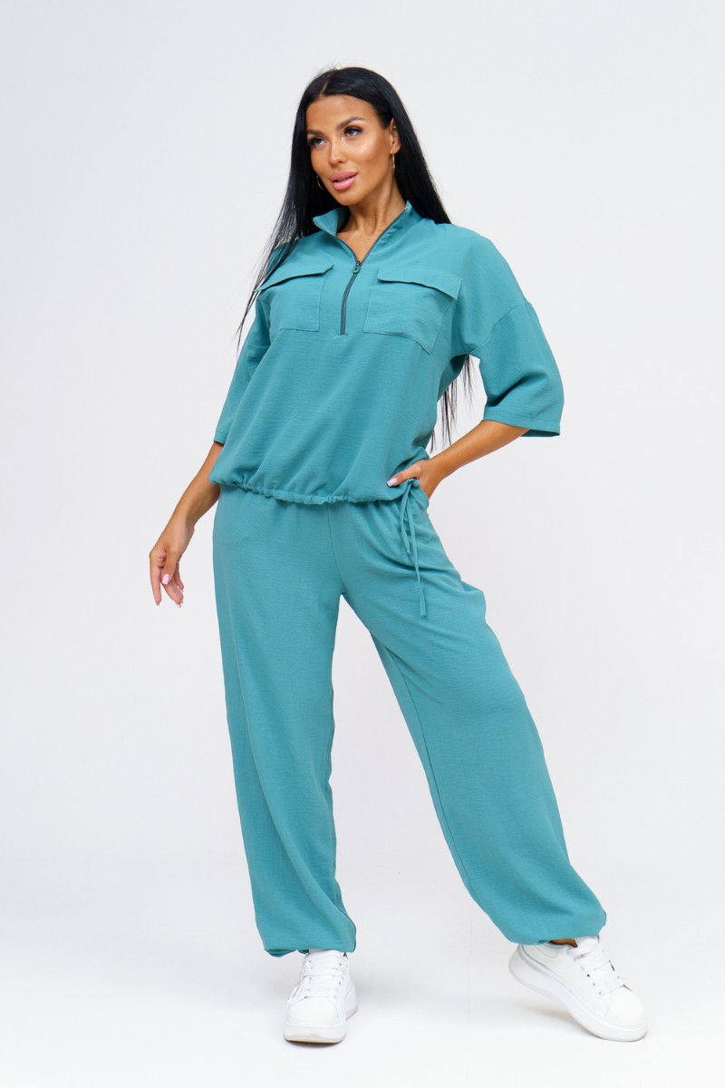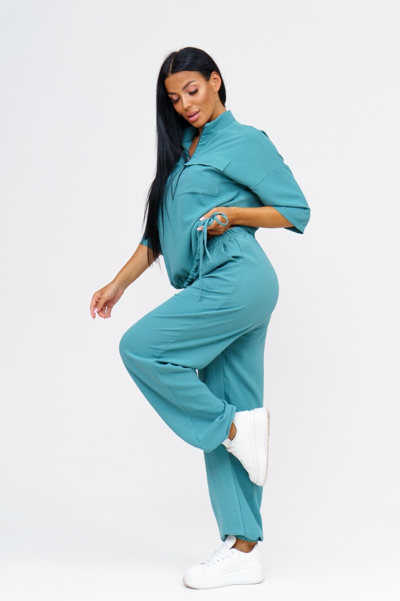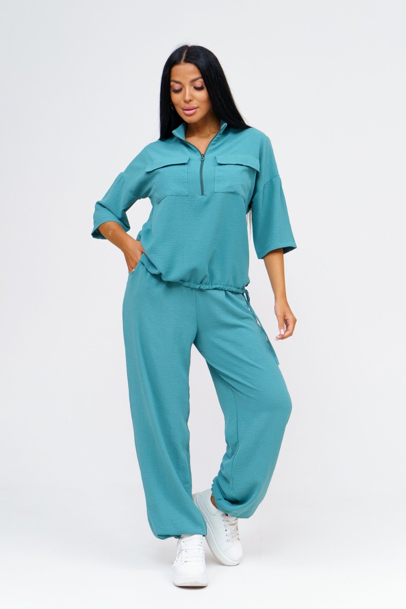 Представляем Вашему вниманию элегантный женский костюм двойку. Стильный комплект идеально подчёркивает вашу индивидуальность и подходит для разнообразных случаев, будь то работа, деловая встреча или романтический вечер. Исполненный в чарующем бирюзовом цвете, он придаёт образу свежести и лёгкости, акцентируя внимание на вашем изысканном вкусе. Брючный костюм женский летний создан из мягкой, дышащей ткани, что обеспечивает комфорт даже в жаркую погоду. Превосходный крой и продуманные детали делают его идеальным выбором для тех, кто ценит качество и утончённый стиль. Дизайнеры предусмотрели все особенности конструктивного покроя, чтобы костюм женский классический садился по фигуре, подчёркивая её достоинства и грациозно скрывая недостатки. Брюки имеют удобную посадку и идеально сочетаются с блузками и топами, что позволяет вам легко создавать разнообразные образы на каждый день. Туника, входящая в комплект, обладает элегантным фасоном и дополнен изысканными деталями. Брючный костюм женский позволяет вам выглядеть эффектно и стильно, независимо от обстоятельств. Костюм женский больших размеров создан с учётом всех модных тенденций и актуальных требований к ношению: он легок и приятен к телу, не стесняет движений и при этом сохраняет форму в течение всего дня. Такого комплекта одежды женской летней трудно найти аналог, ведь он идеально подходит как для дневных офисных будней, так и для вечерних выходов.