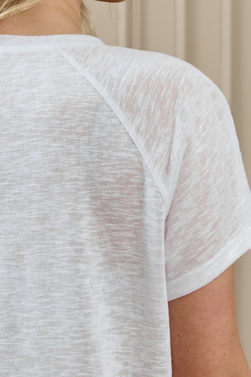 Представляем Вашему вниманию женскую футболку из гладкокрашеного трикотажного полотна «деворе», классического кроя, с горловиной овальной формы, обработанной втачной планкой, рукавами покроя «реглан».