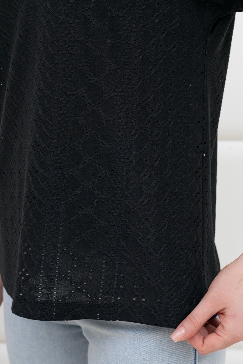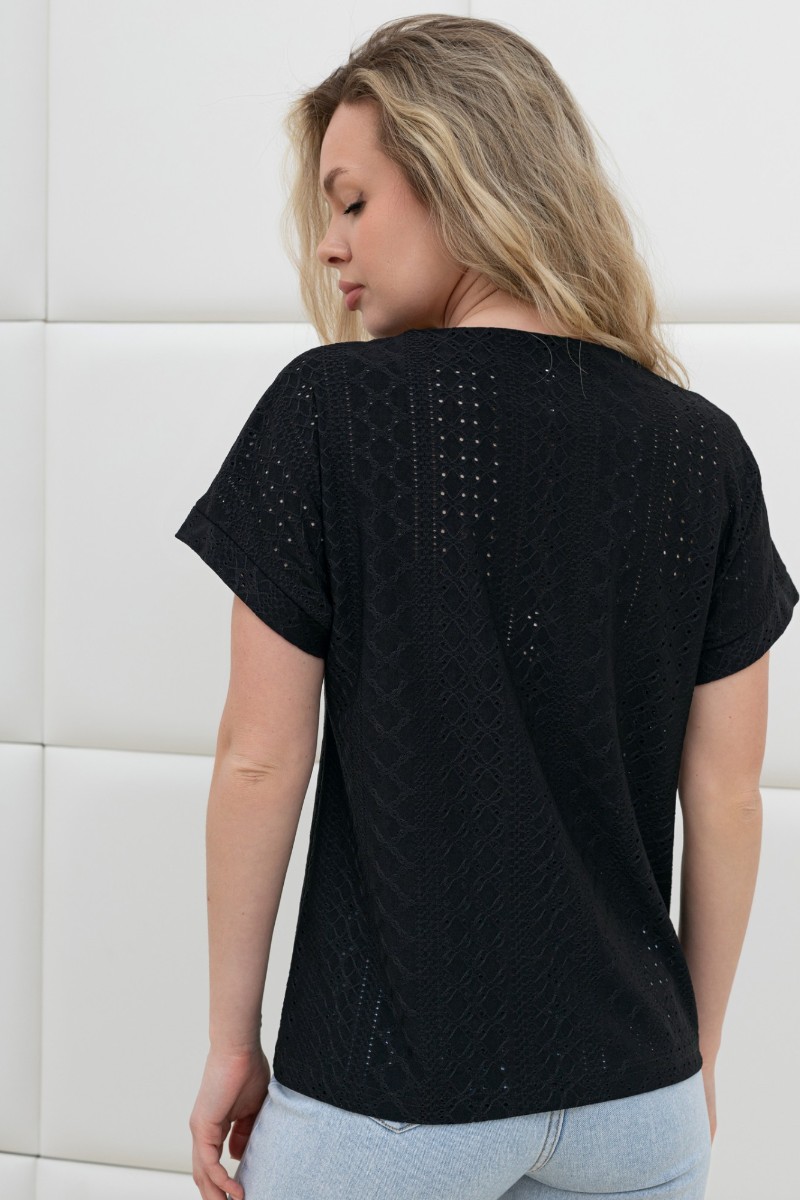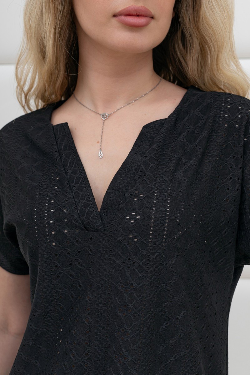 Блузка женская "Дис" фактурный трикотаж (р-ры: 44-54) черный