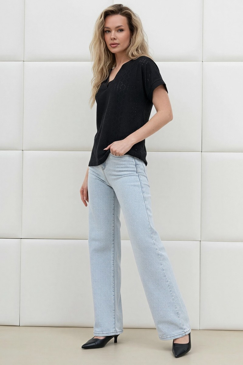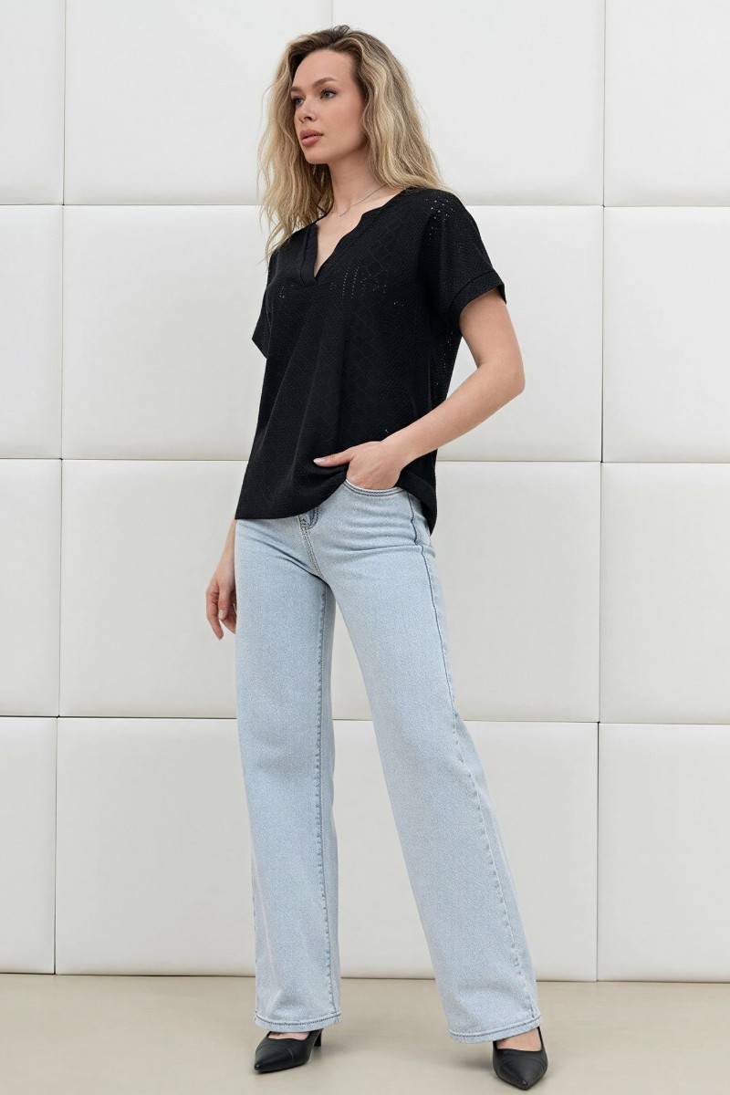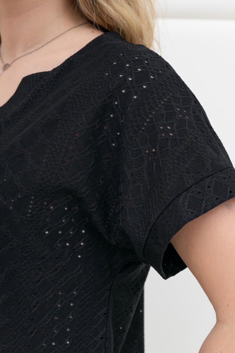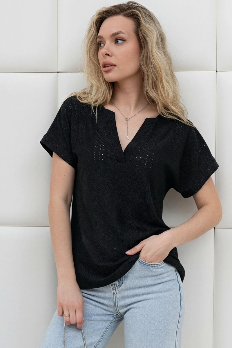Блузка женская "Дис" фактурный трикотаж (р-ры: 44-54) черный