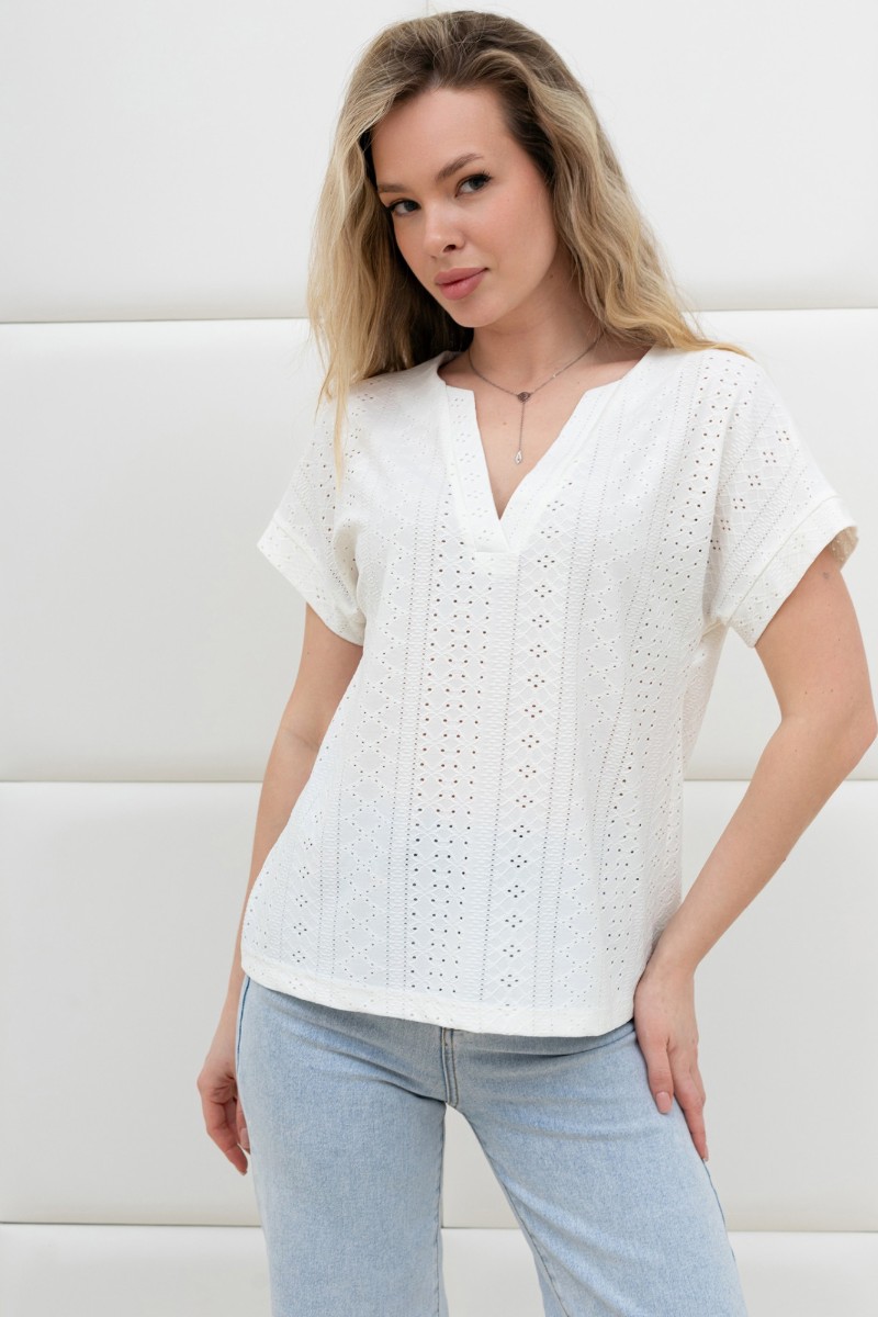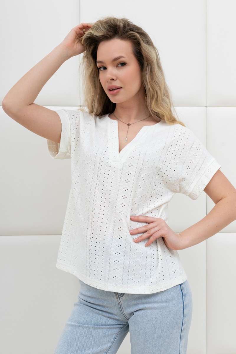 Блузка женская "Дис" фактурный трикотаж (р-ры: 44-54) молочный