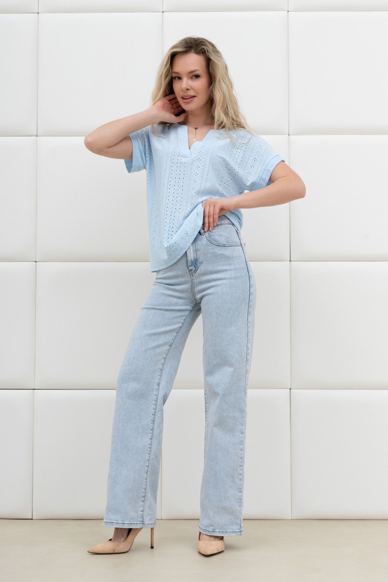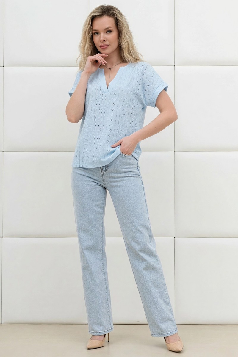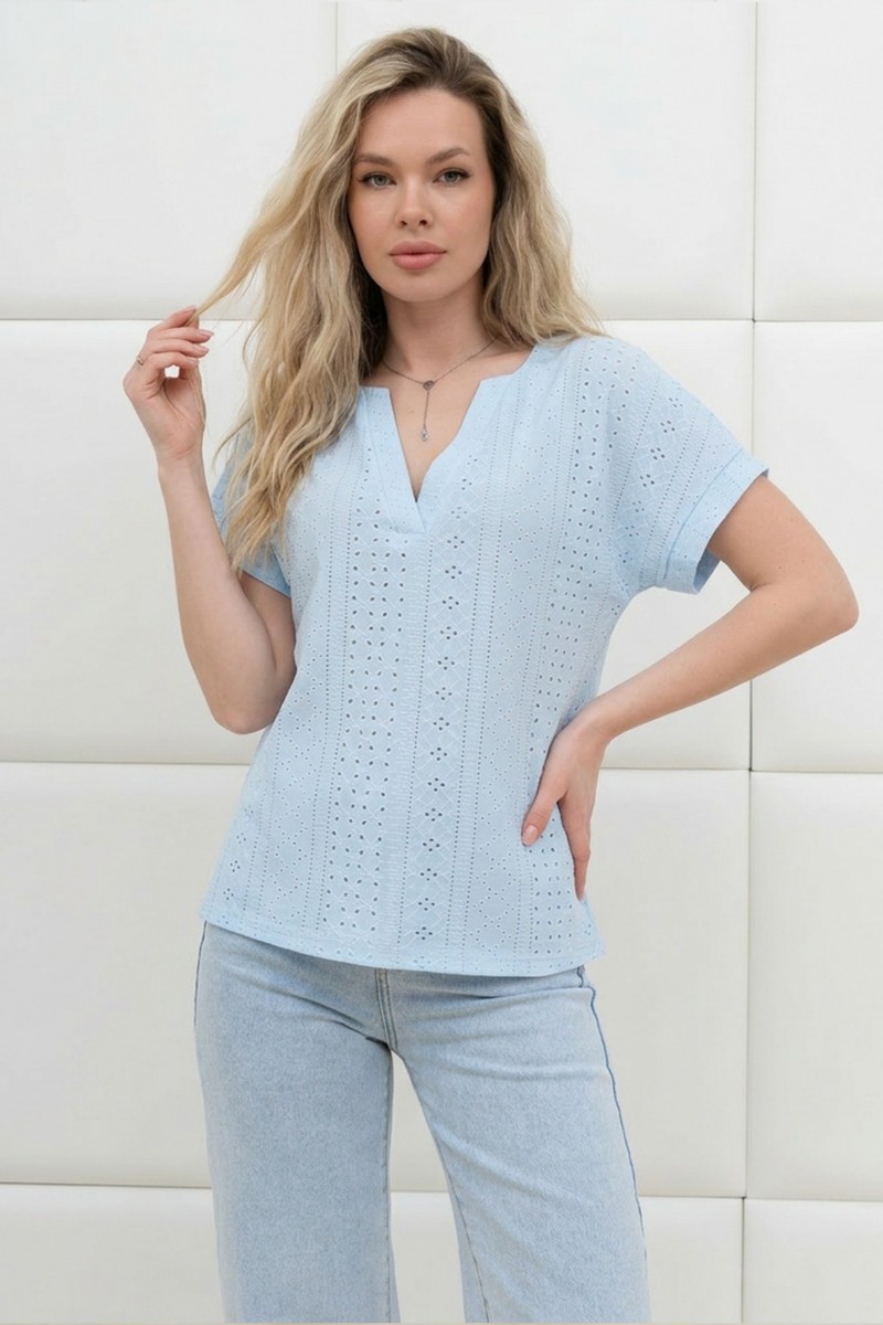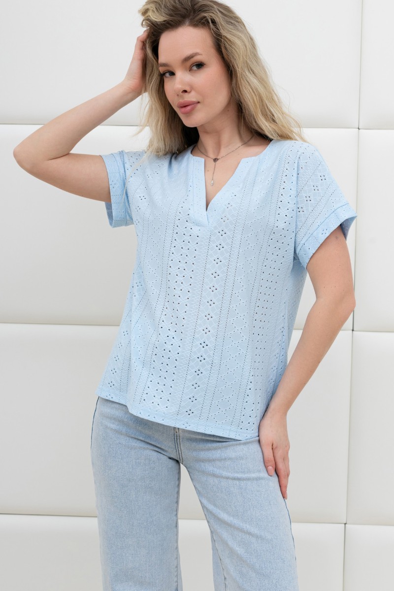 Блузка женская "Дис" фактурный трикотаж (р-ры: 44-54) голубой