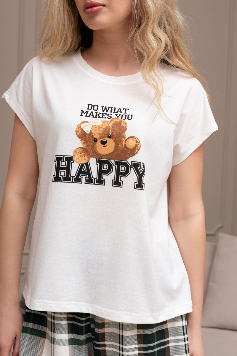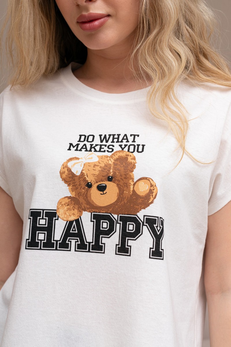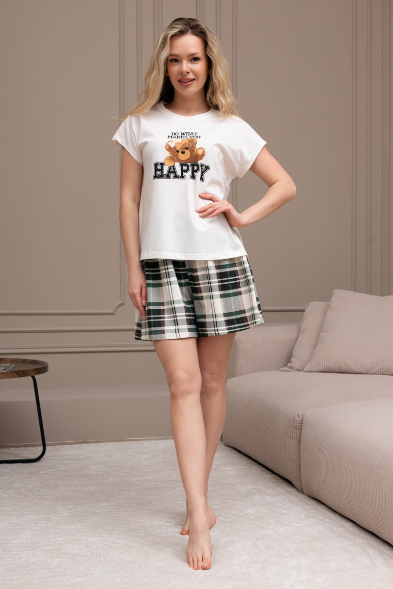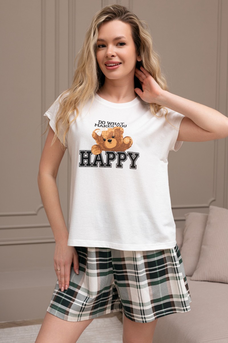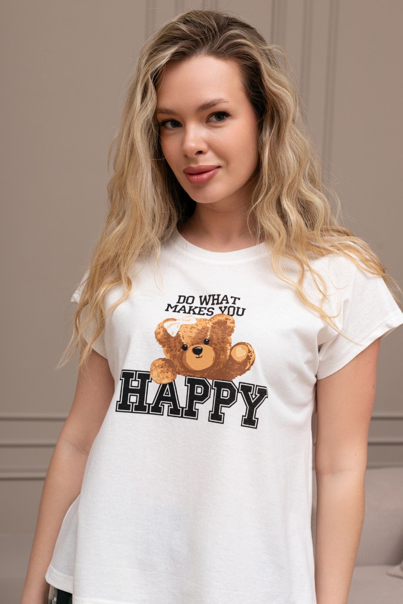 Представляем Вашему вниманию костюм женский из трикотажного полотна "кулирка" в комбинации двух видов: гладкокрашеного и набивного с тематическим рисунком, состоящий из футболки и шорт. Футболка из гладкокрашеного полотна, с цельнокроеными короткими рукавами, горловиной овальной формы, обработанной втачной планкой и отделочной строчкой. В центре переда - принт, выполненный в технике шелкографии. Шорты из полотна с набивным рисунком, свободного силуэта, на цельнокроенном поясе с эластичной тесьмой внутри.
