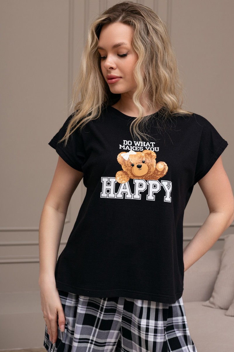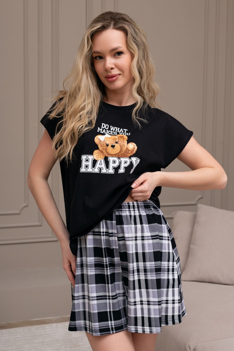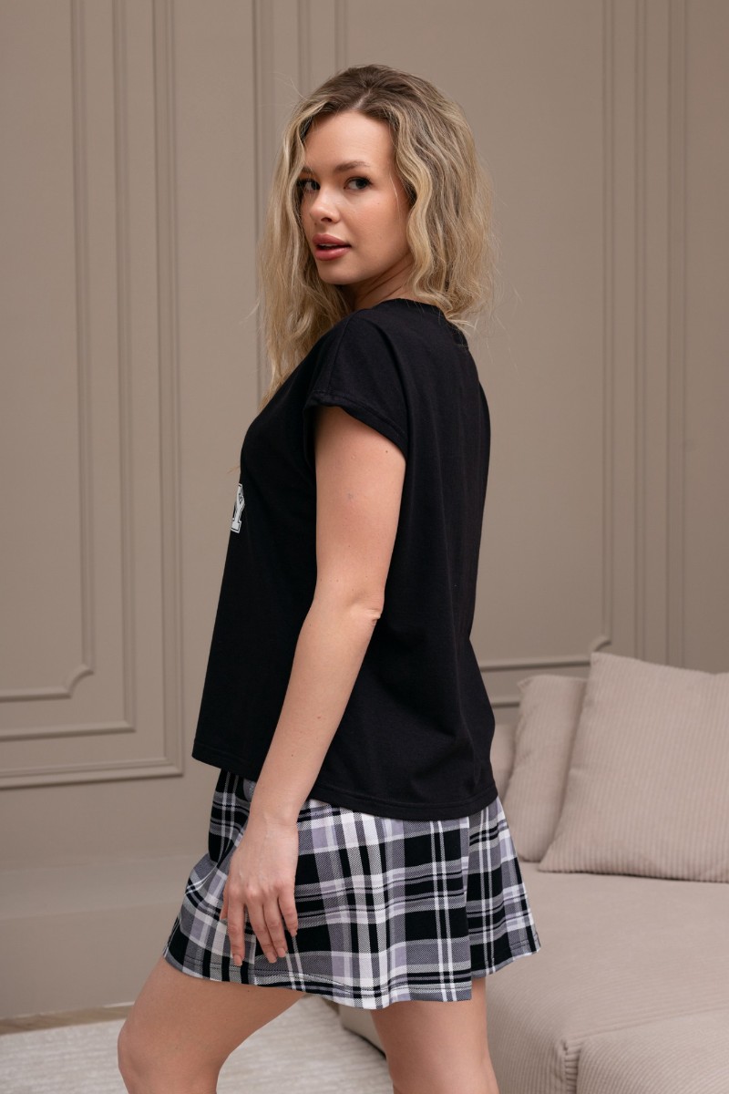 Представляем Вашему вниманию костюм женский из трикотажного полотна "кулирка" в комбинации двух видов: гладкокрашеного и набивного с тематическим рисунком, состоящий из футболки и шорт. Футболка из гладкокрашеного полотна, с цельнокроеными короткими рукавами, горловиной овальной формы, обработанной втачной планкой и отделочной строчкой. В центре переда - принт, выполненный в технике шелкографии. Шорты из полотна с набивным рисунком, свободного силуэта, на цельнокроенном поясе с эластичной тесьмой внутри.