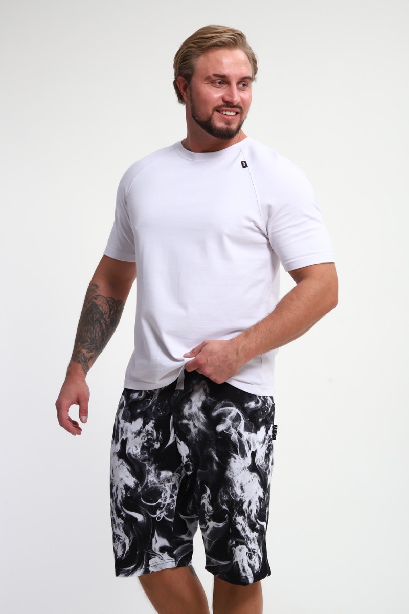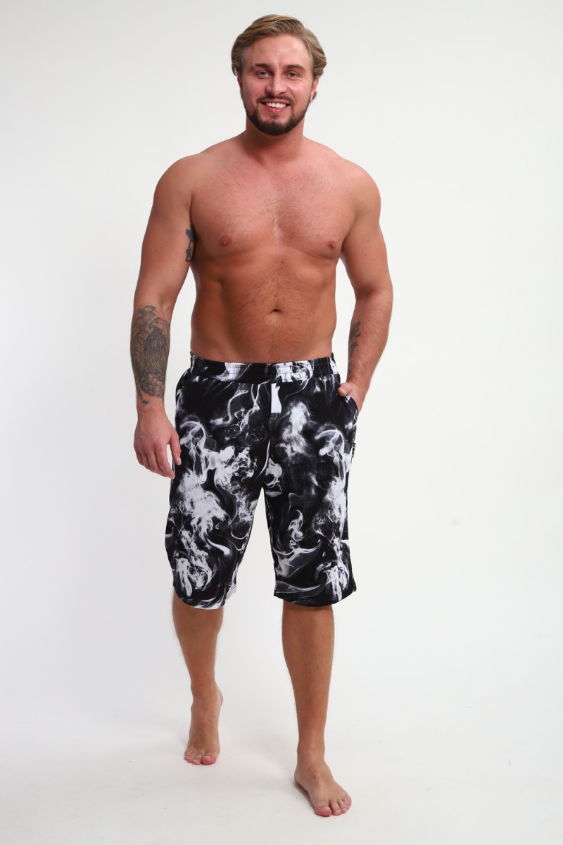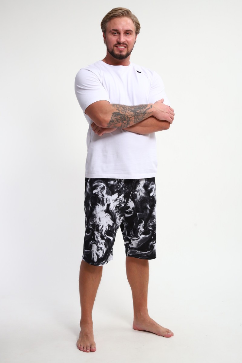 Шорты мужские ШМ-03 кулирка (р-ры: 46-56) черный-белый дым