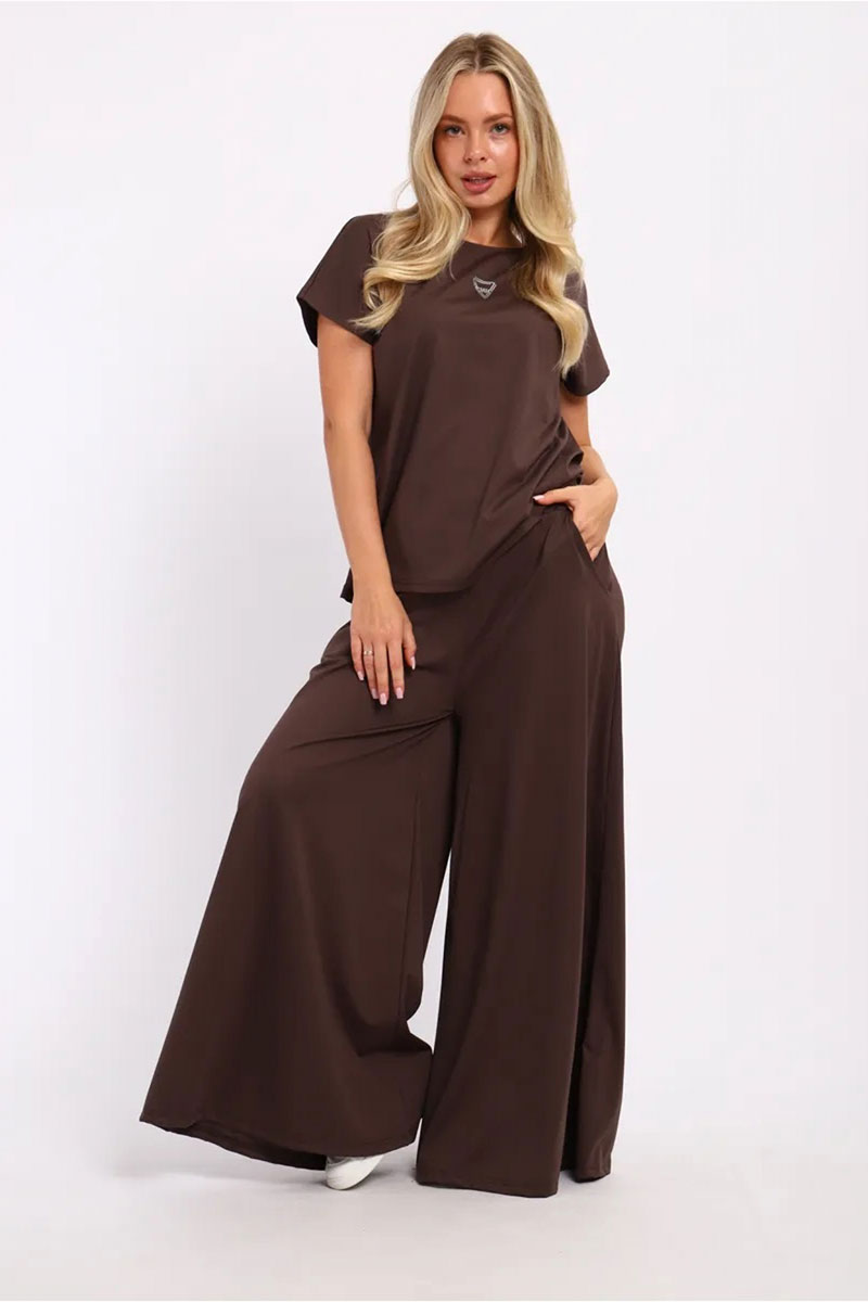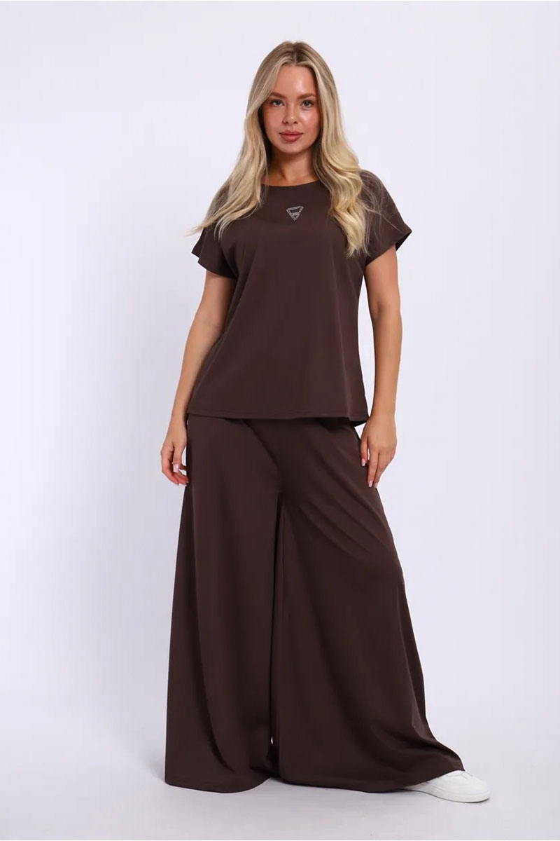 Представляем Вашему вниманию замечательный женский костюм, изготовленный из качественного материала. В этом костюме Вы всегда будете чувствовать себя уютно, удобно и комфортно, так как ткань очень легкая, нежная и приятная к телу. Костюм украшен стильным рисунком и эффектно смотрится. Наряд хорошо сидит на фигуре любого типа и не стесняет движений, даря Вам уверенность в себе.