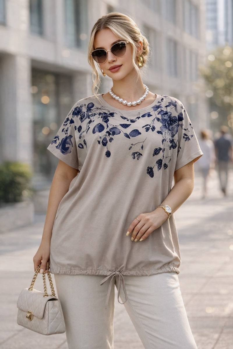 Футболка женская М-258 "Delicate Bloom" хлопок стрейч (р-ры: 48-56) капучино