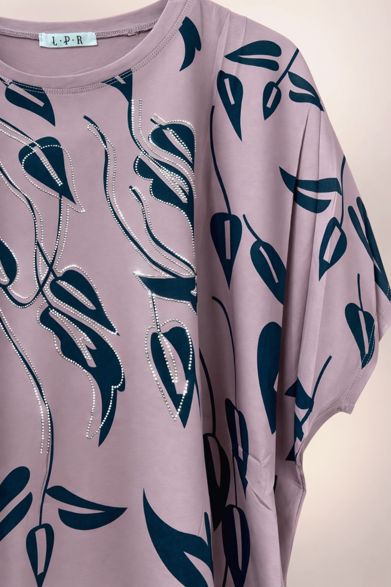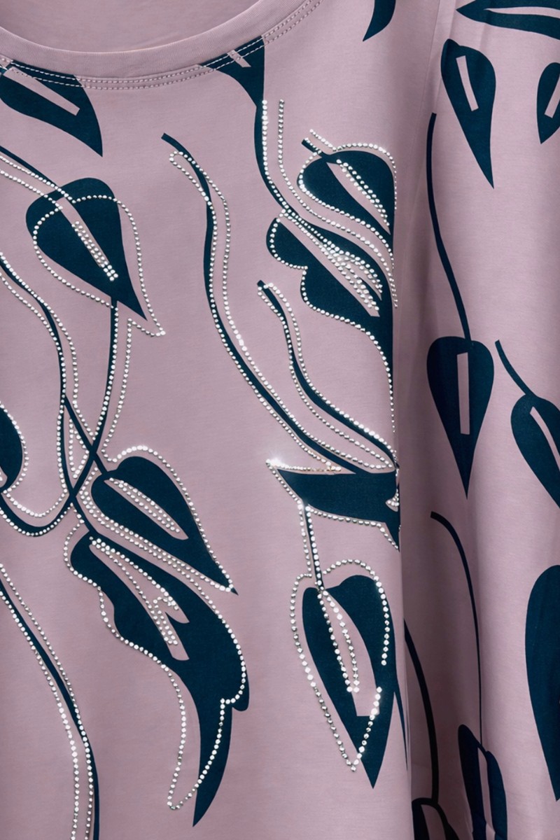 Центральный акцент — ботанический принт в темной гамме, дополненный расстановкой страз по контурам листьев и ветвей. Стразы переливаются в свете, создавая эффект «живого» декора — не кричащего, а деликатного, с глубиной и текстурой. Это не блеск ради блеска, а акцент, который говорит о вашем вкусе и внимании к деталям.