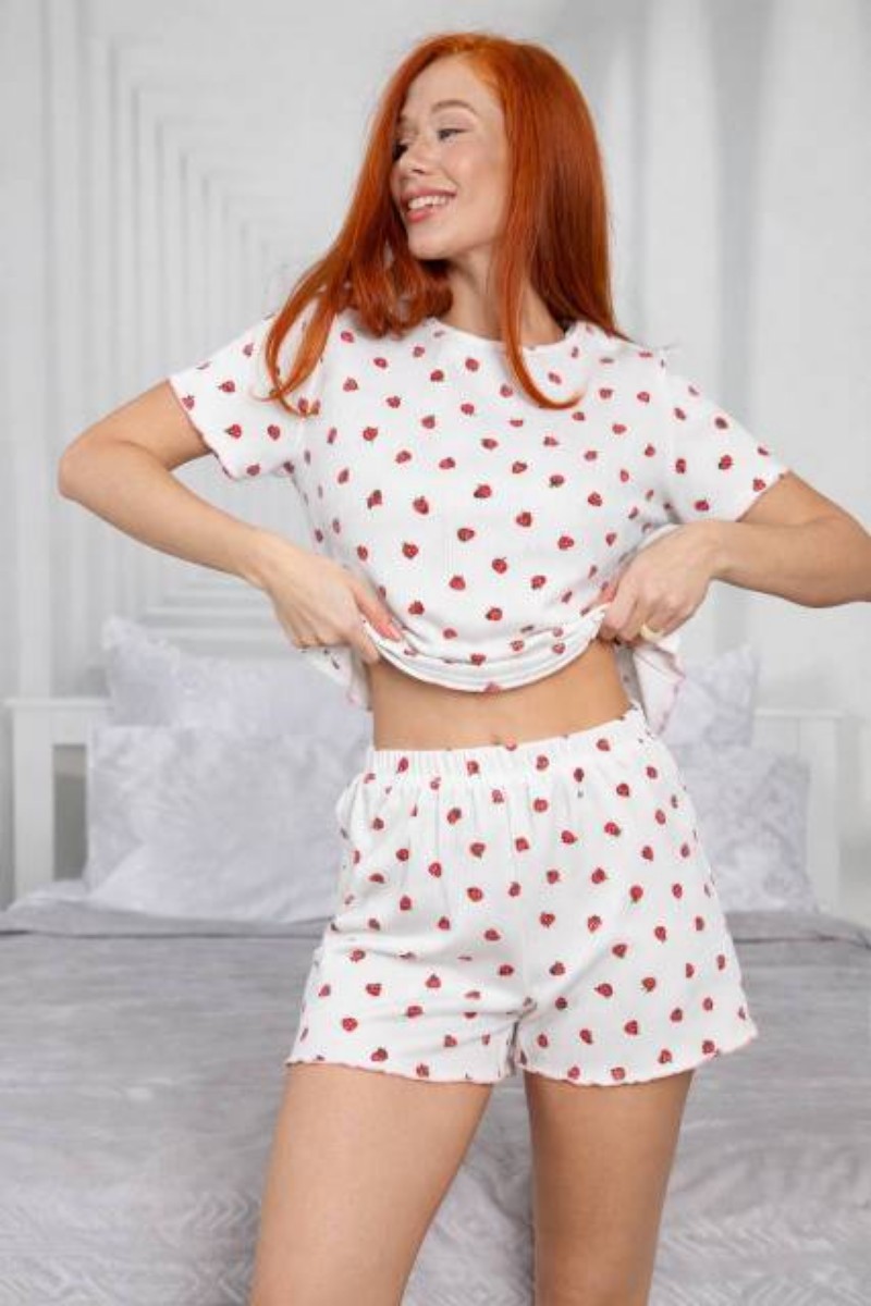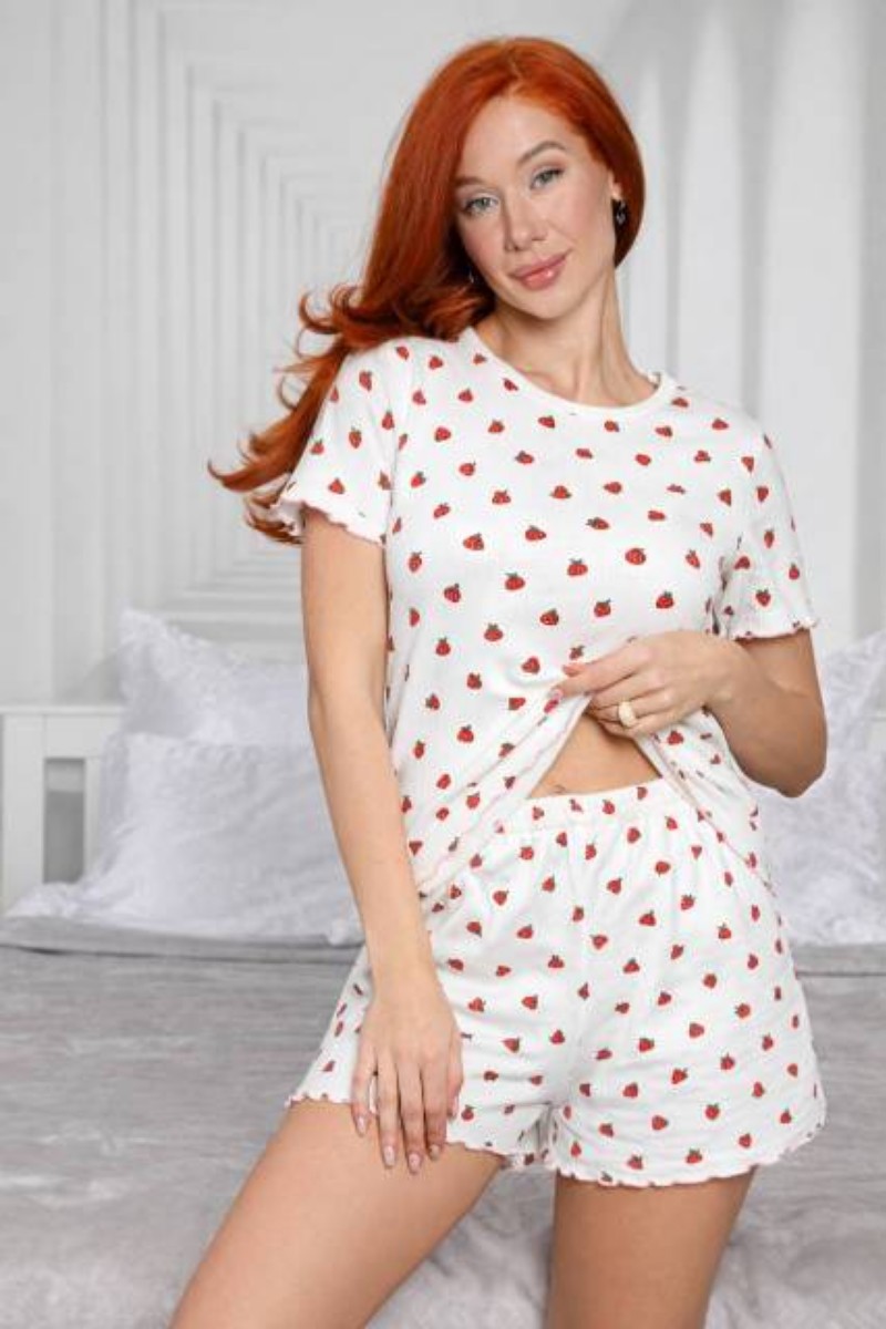 Пижама женская М-1032 трикотаж рубчик (р-ры: 42-52) земляничка