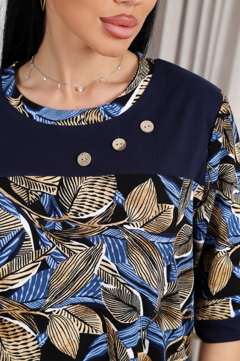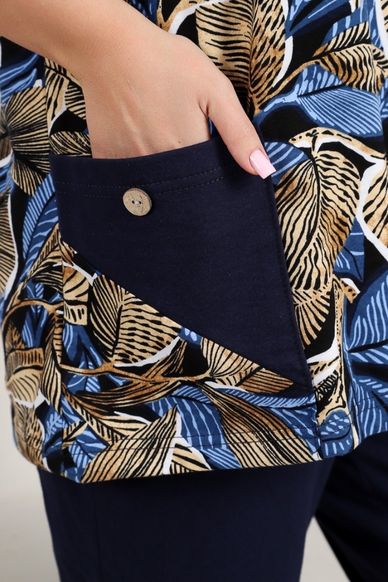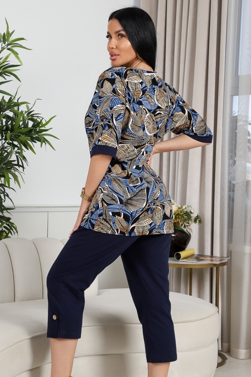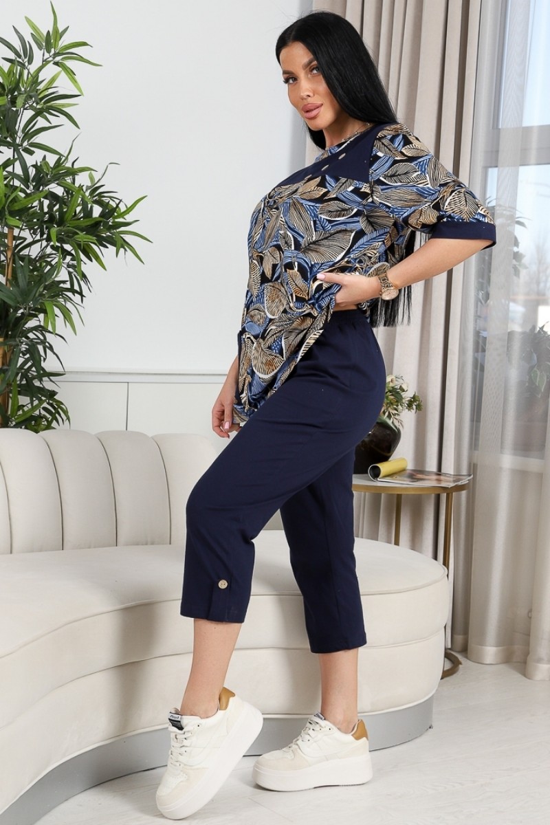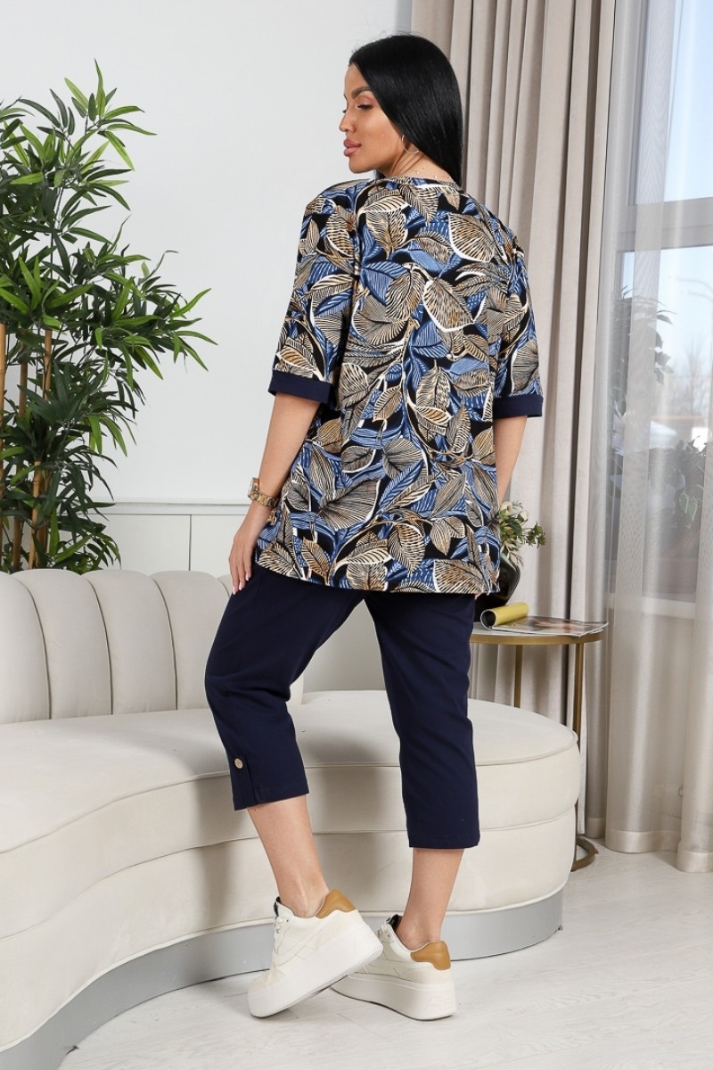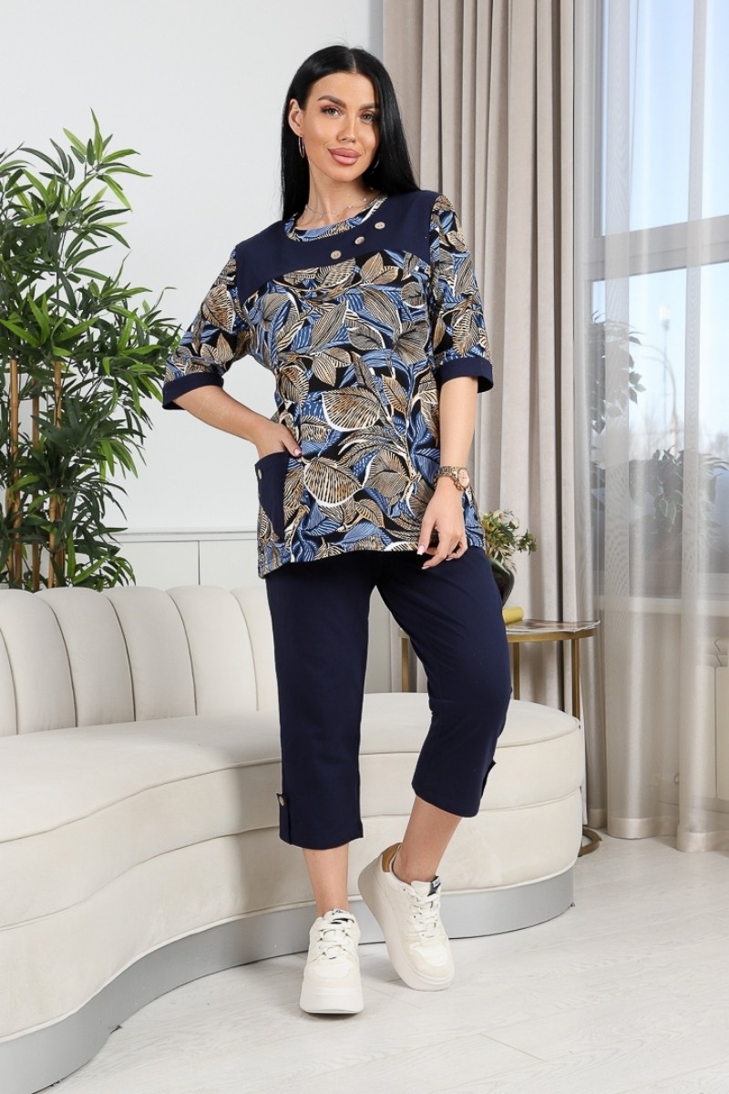 Костюм двойка женский 634 "Листья" кулирка (р-ры: 50-60) синий