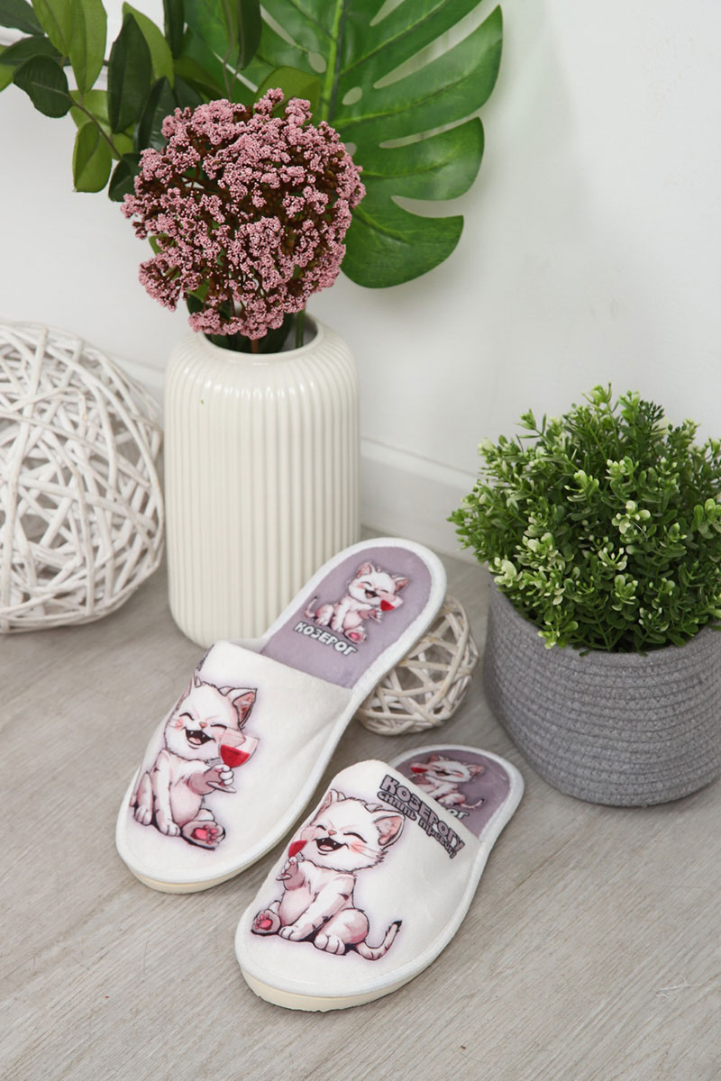 Представляем Вашему вниманию тапки из теплого, мягкого и приятного на ощупь материала. Подошва изготовлена из материала ЭВА, который славится легкостью, эластичностью и теплозащитными свойствами. Тапки из велюра с оригинальным принтом поднимут настроение и станут отличным подарком. Домашние женские тапочки имеют нескользящую прочную подошву. Тапочки женские с оригинальными принтом порадуют ваших гостей дома и на даче!