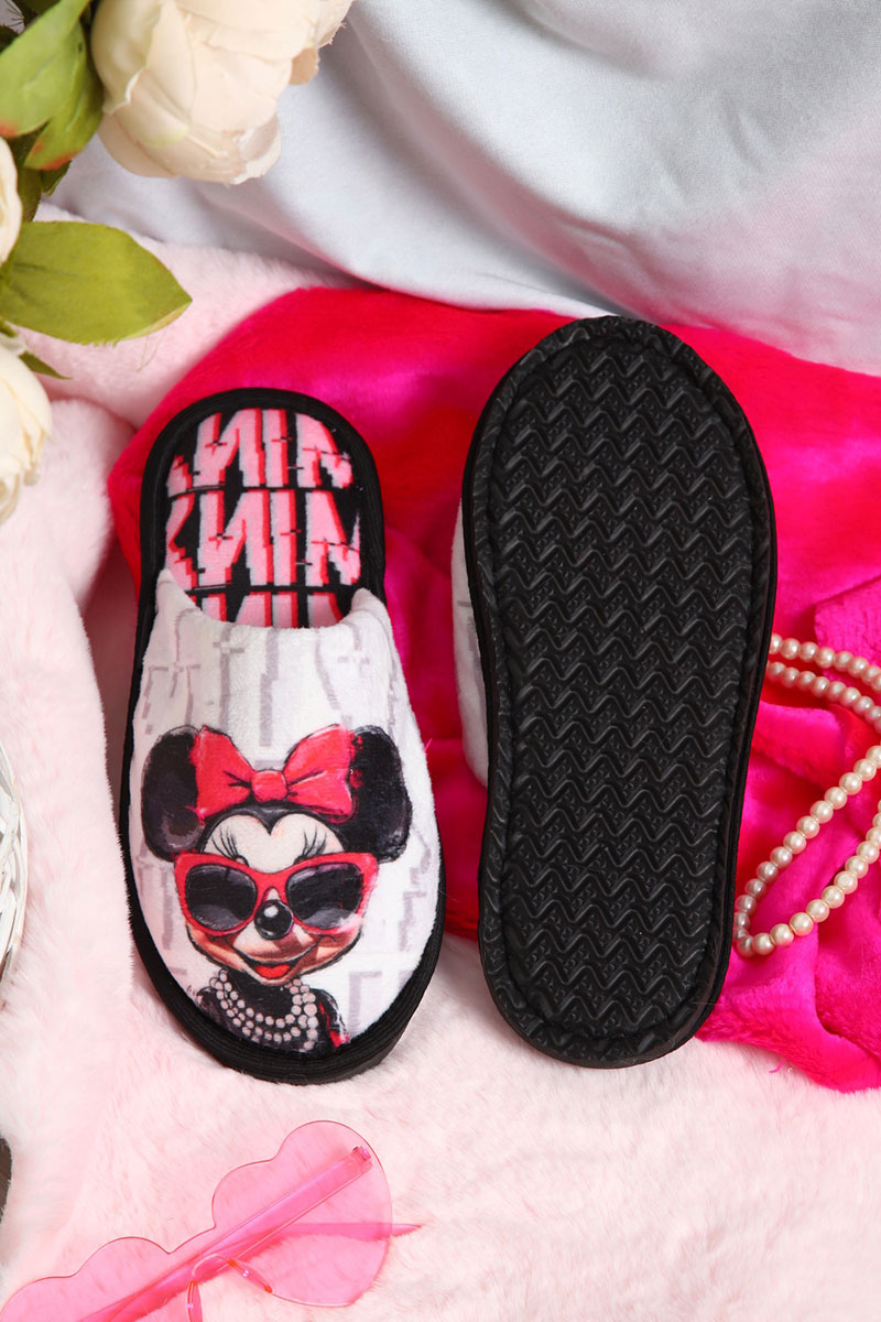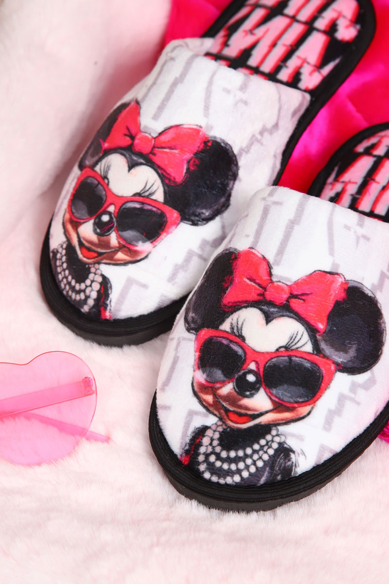 Тапки женские "Emotion Day" велюр "Minnie" (последний размер) серо-розовый 36-37