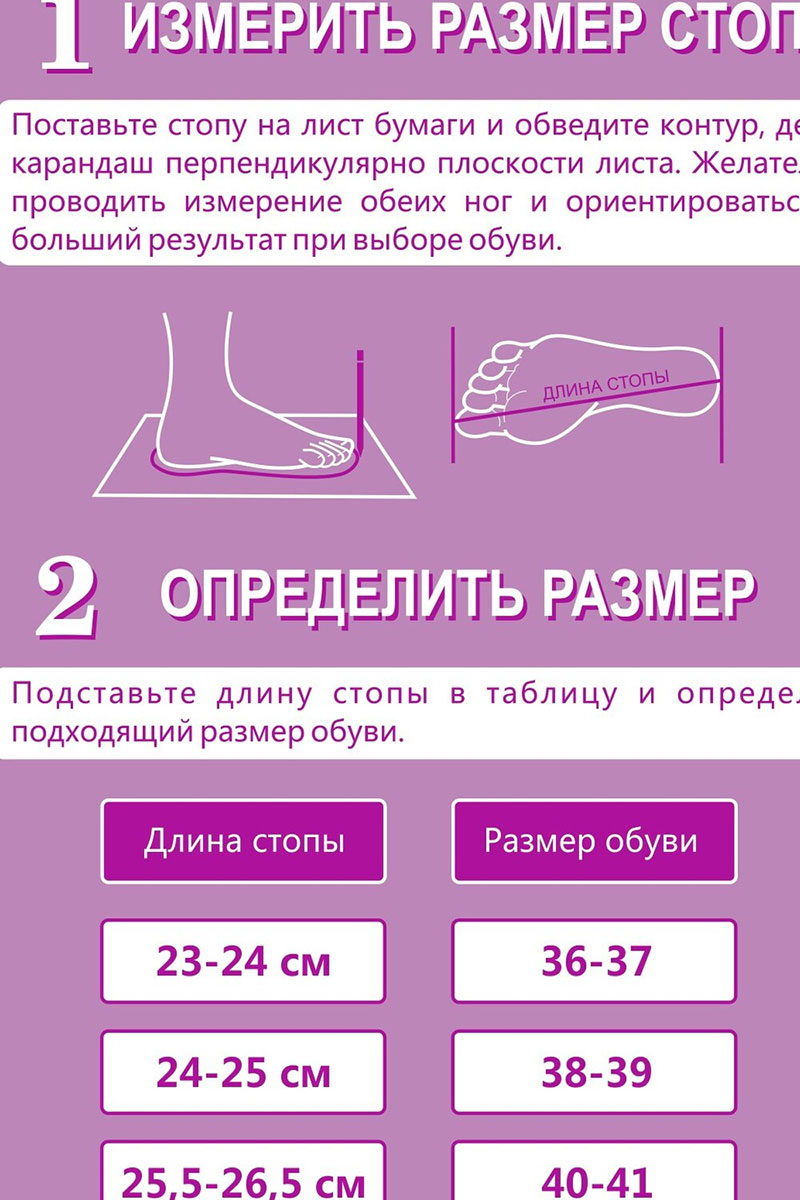| Размер | Длина стопы, см |
