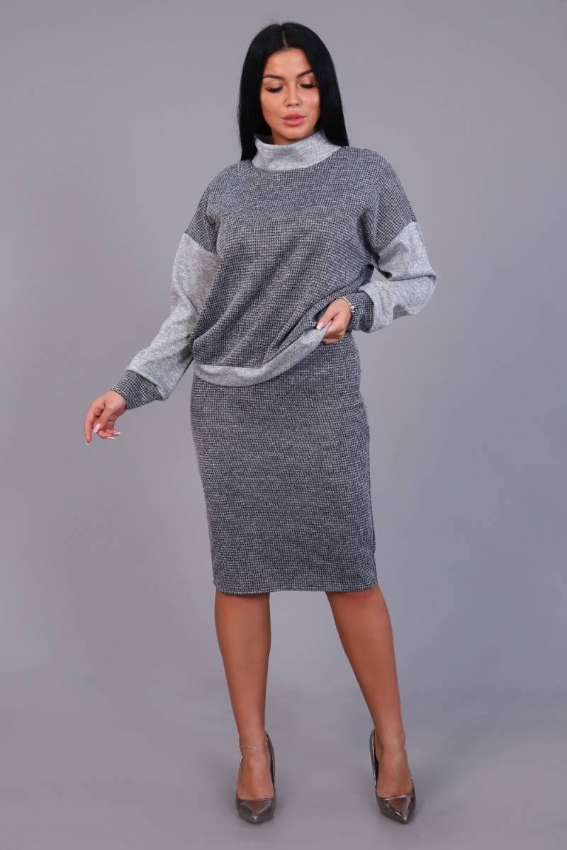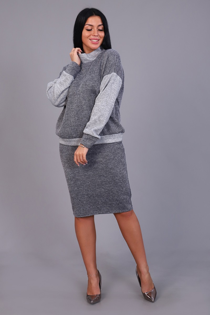 Костюм двойка женский с юбкой №20658 сандра (последний размер) серый 56