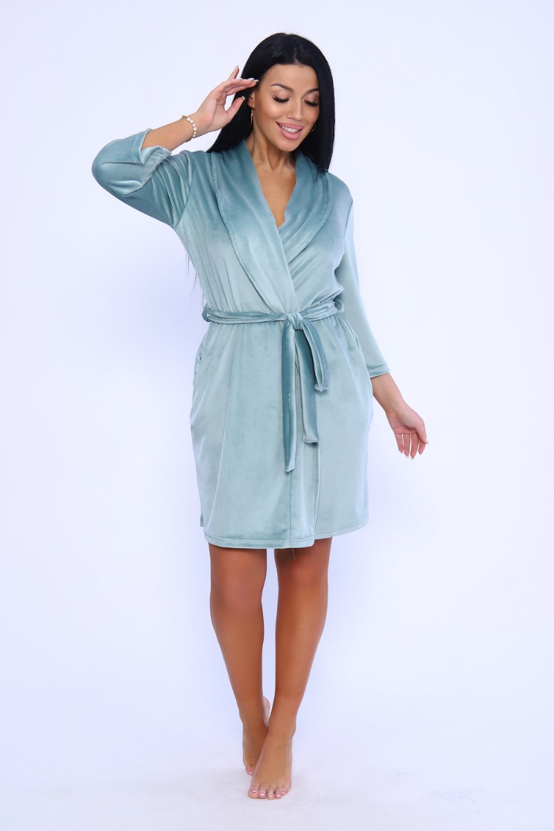 Халат женский №71094 велюр (последний размер) мятный 56