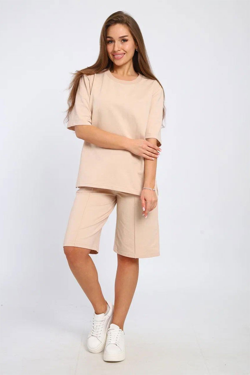 Костюм двойка женский М-209 хлопок с лайкрой (последний размер) бежевый 42,46,50,52