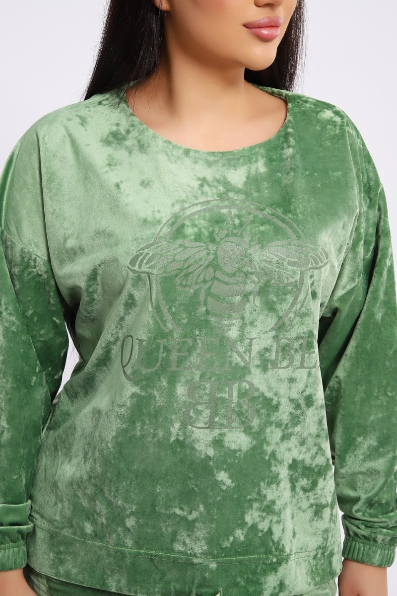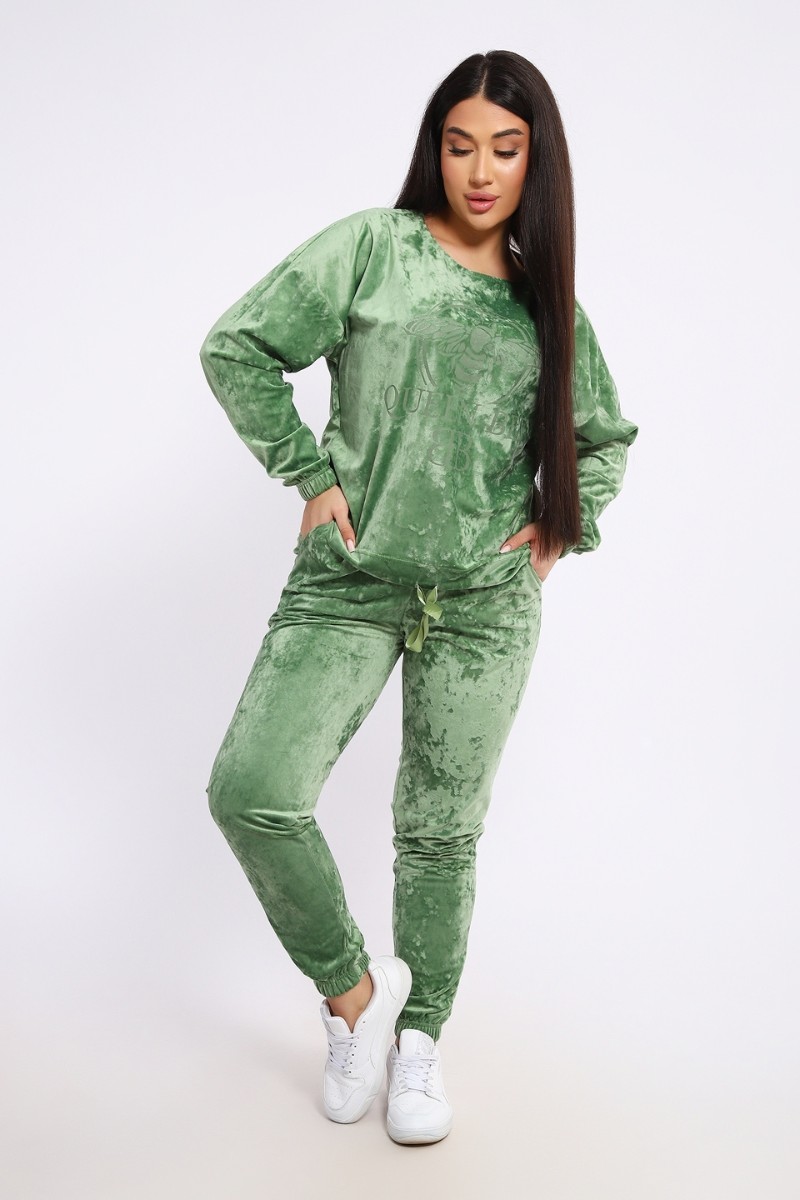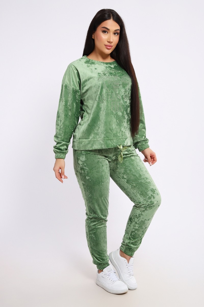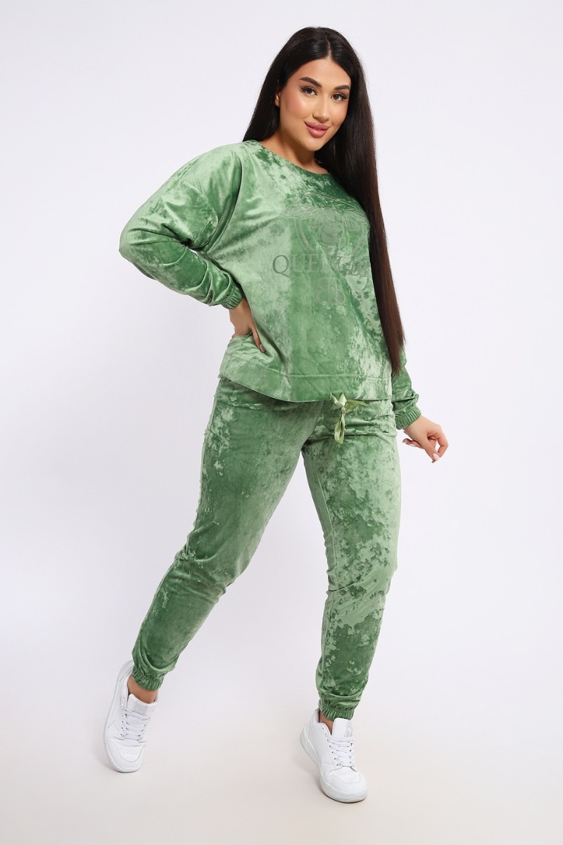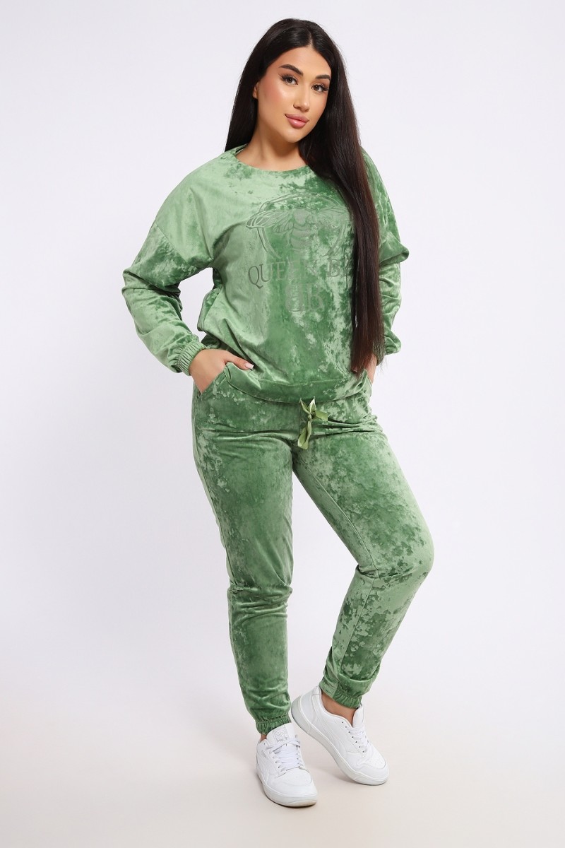 Костюм двойка женский "QUEEN BEE 2" велюр (последний размер) оливковый 52,56