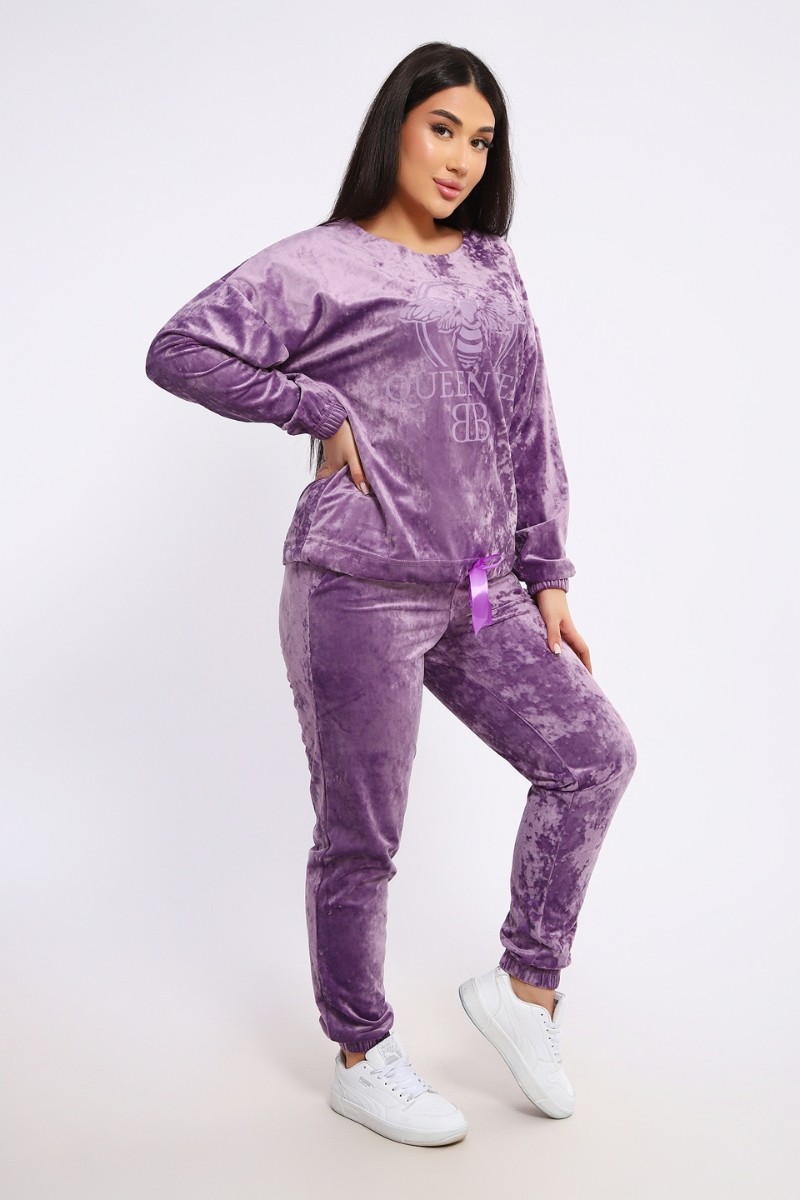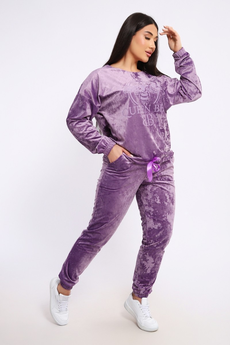 Костюм двойка женский "QUEEN BEE 2" велюр (последний размер) лаванда 46,54