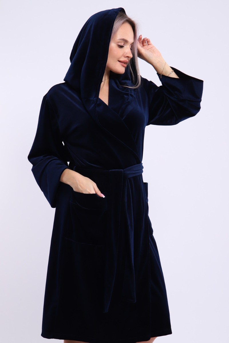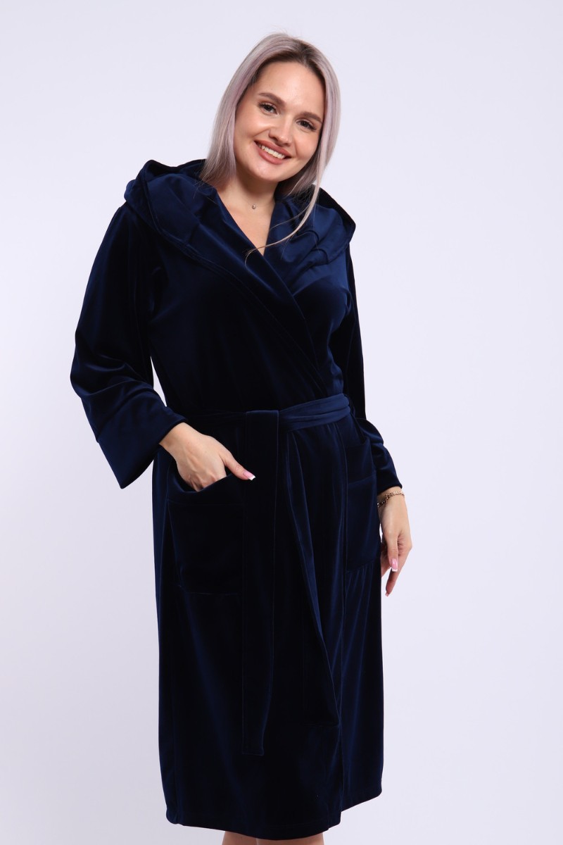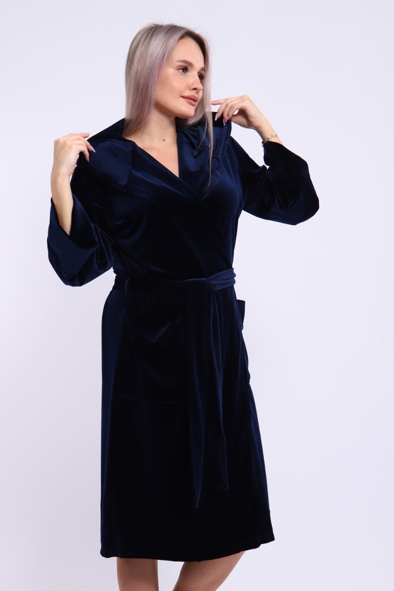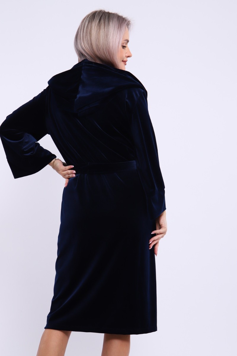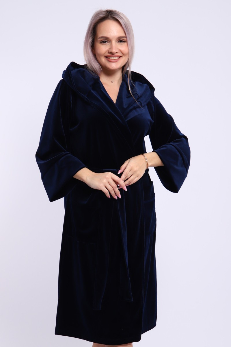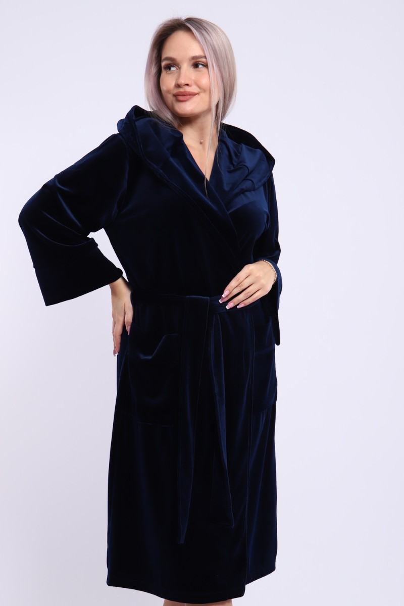 Халат женский №205 велюр (последний размер) темно-синий 56