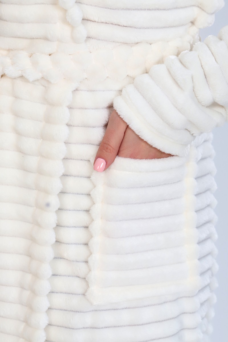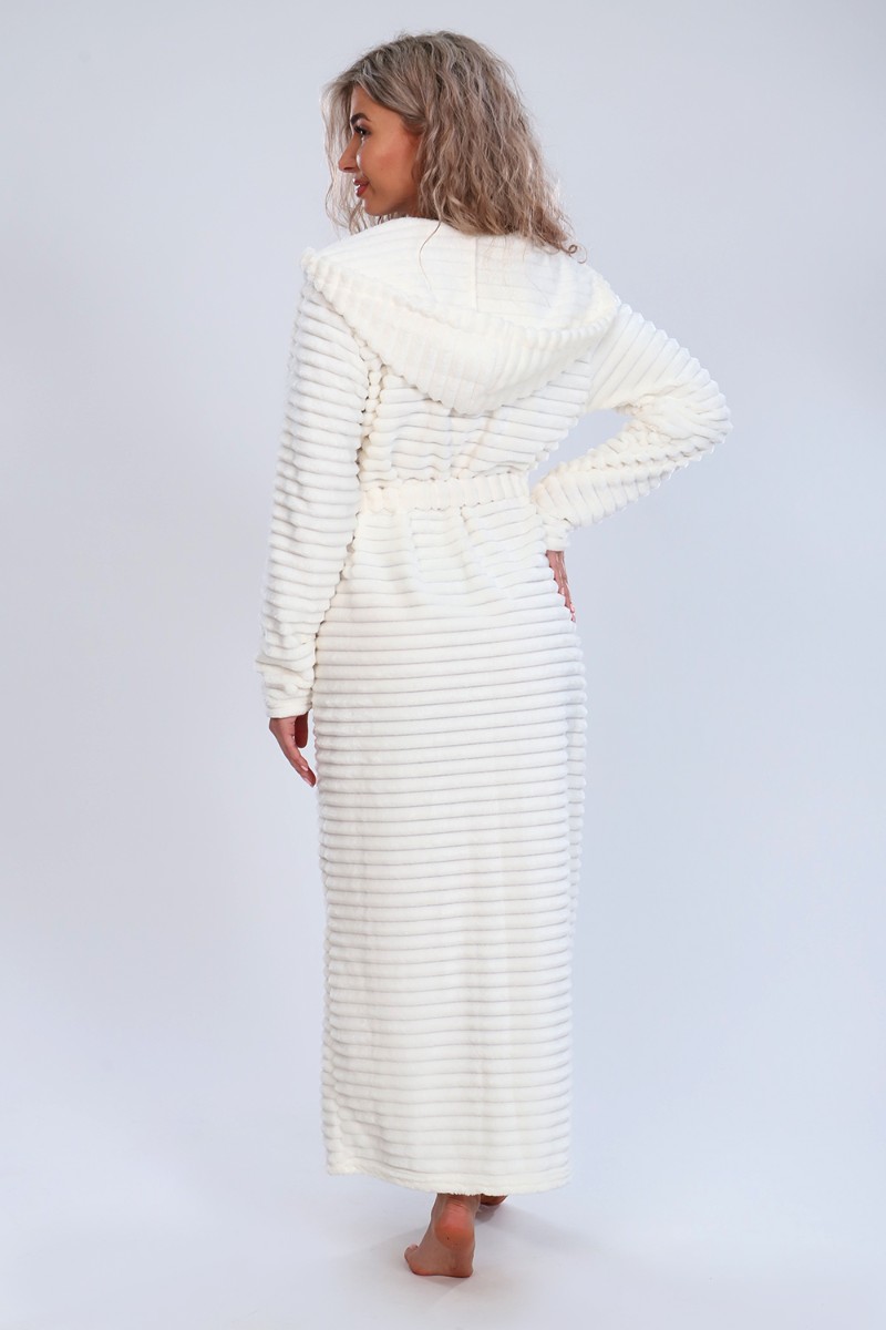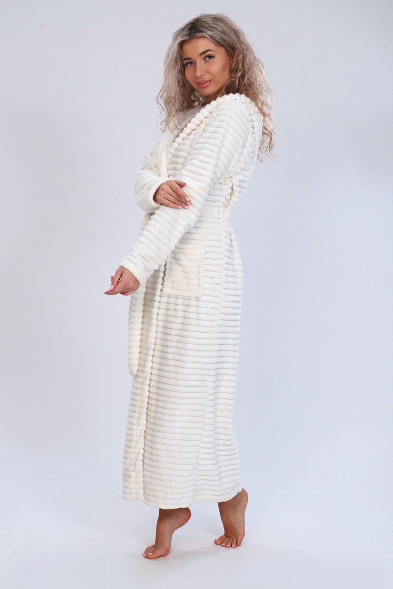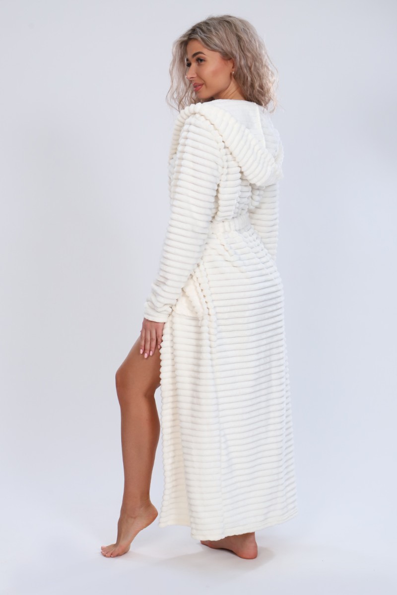 Представляем Вашему вниманию женский домашний халат мягкий и уютный. Сшит из самого нежного велсофта, Материал хорошо сохраняет тепло, воздухопроницаемый, износоустойчив, Женские халаты из этого материала получаются невероятно комфортными, тёплыми и уютными. Данная модель халата имеет два вместительных кармана, удобный пояс и объёмный капюшон. Длина изделия Макси